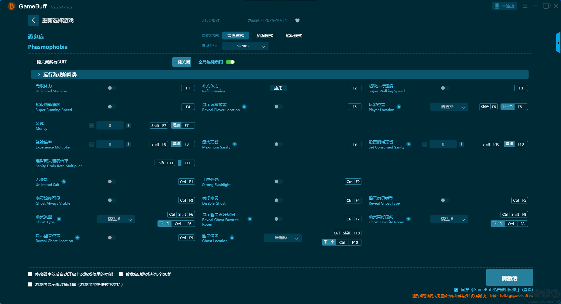 恐鬼症(Phasmophobia)21项修改器pc官网版加强模式修改功能介绍
