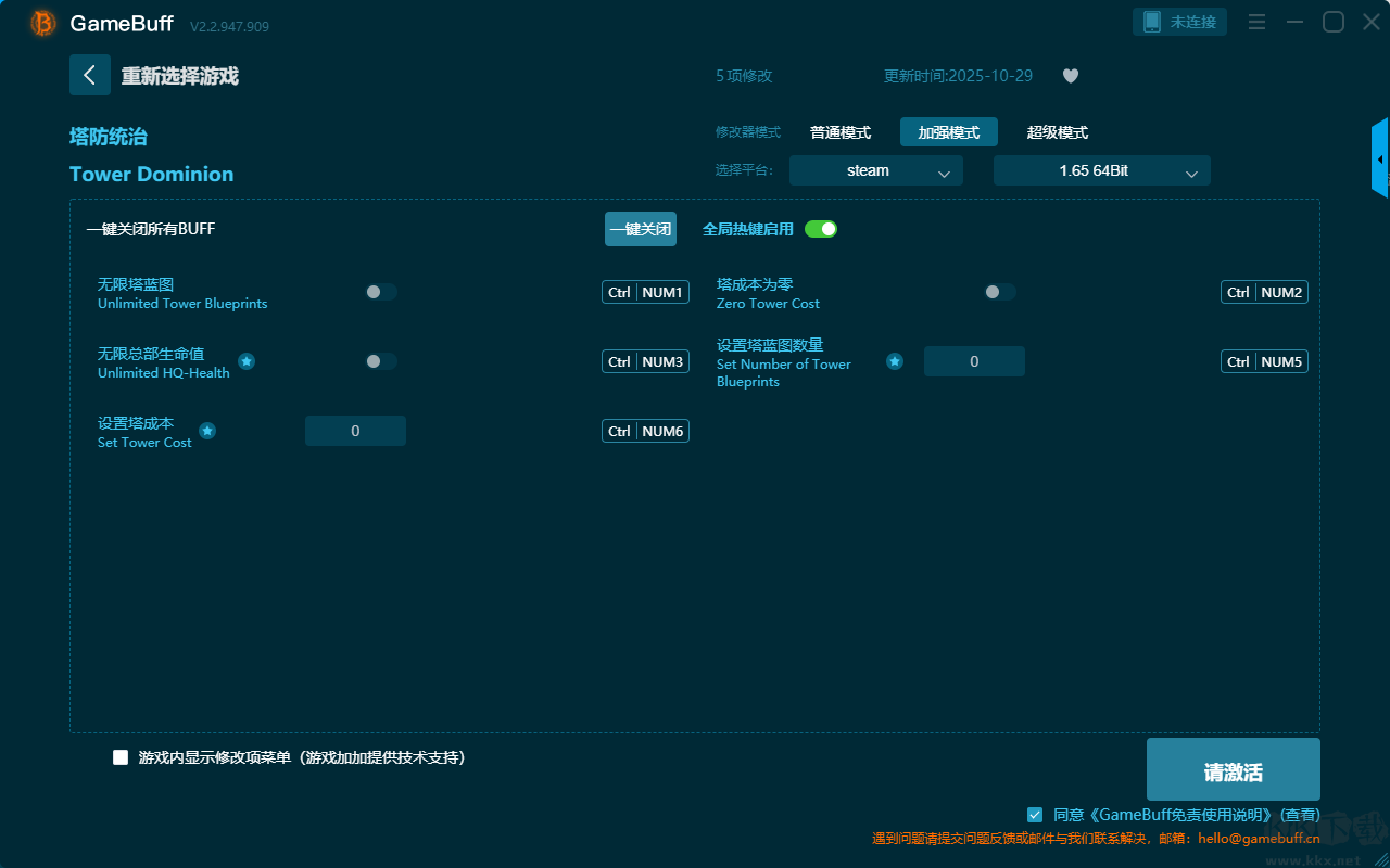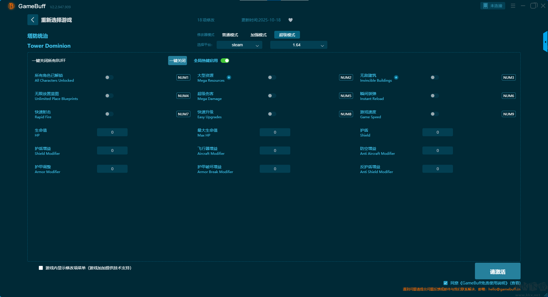塔防统治三项修改器pc重置版是一款专业且强大的游戏辅助工具。玩家可在游戏中一键开启所有角色已解锁、无限放置蓝图、快速射击、生命值、护盾增益、护甲调整、大型资源等十八项超级模式修改功能。这款修改器还支持在steam平台游玩使用。需要的小伙伴快来KK下载站下载体验一下吧。
