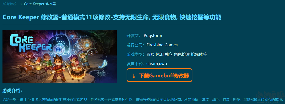 Core Keeper十一项修改器pc国际版普通模式 (支持 11 项修改,不支持联网模式)