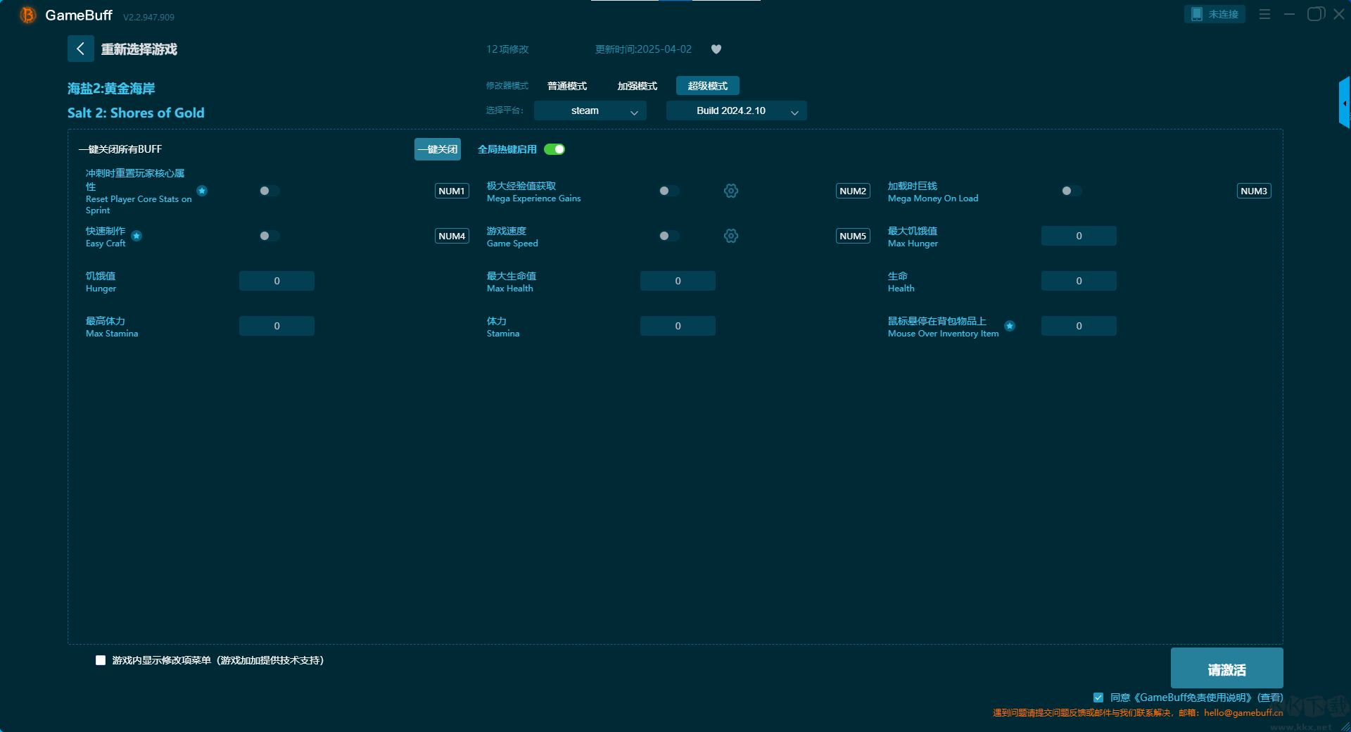 盐2黄金海岸十项修改器pc绿色版超级模式修改功能介绍