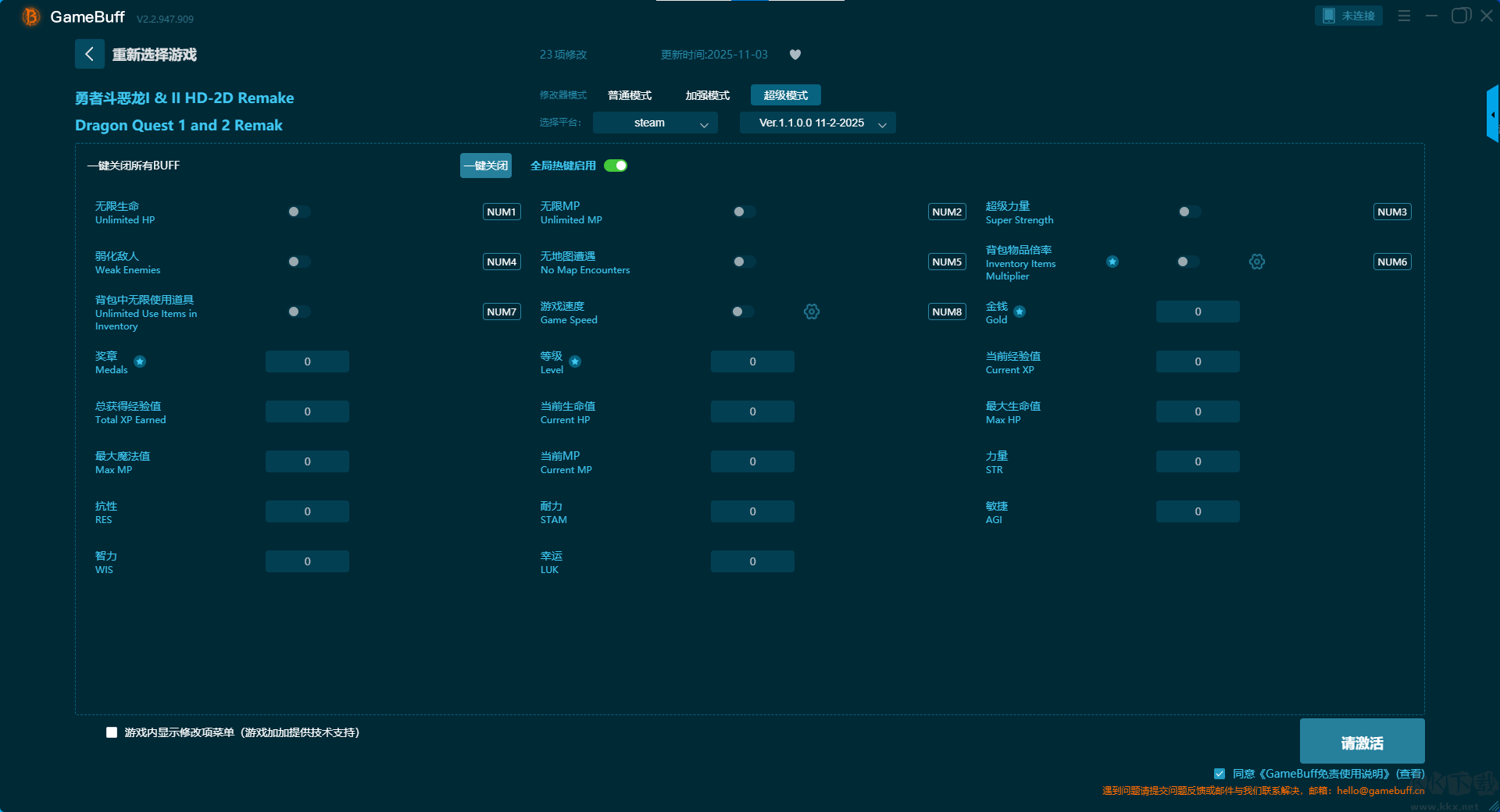 Dragon Quest 1 and 2 Remak四十二项修改器pc官方版超级模式 (支持 23 项修改,不支持联网模式)