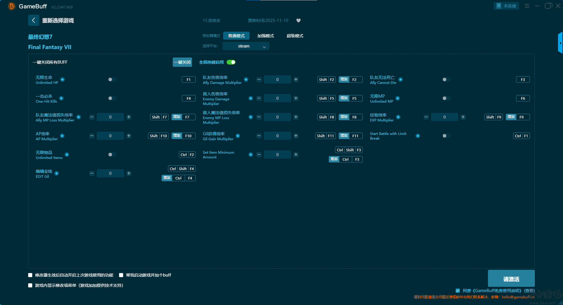 最终幻想7十五项修改器pc正式版普通模式修改功能介绍