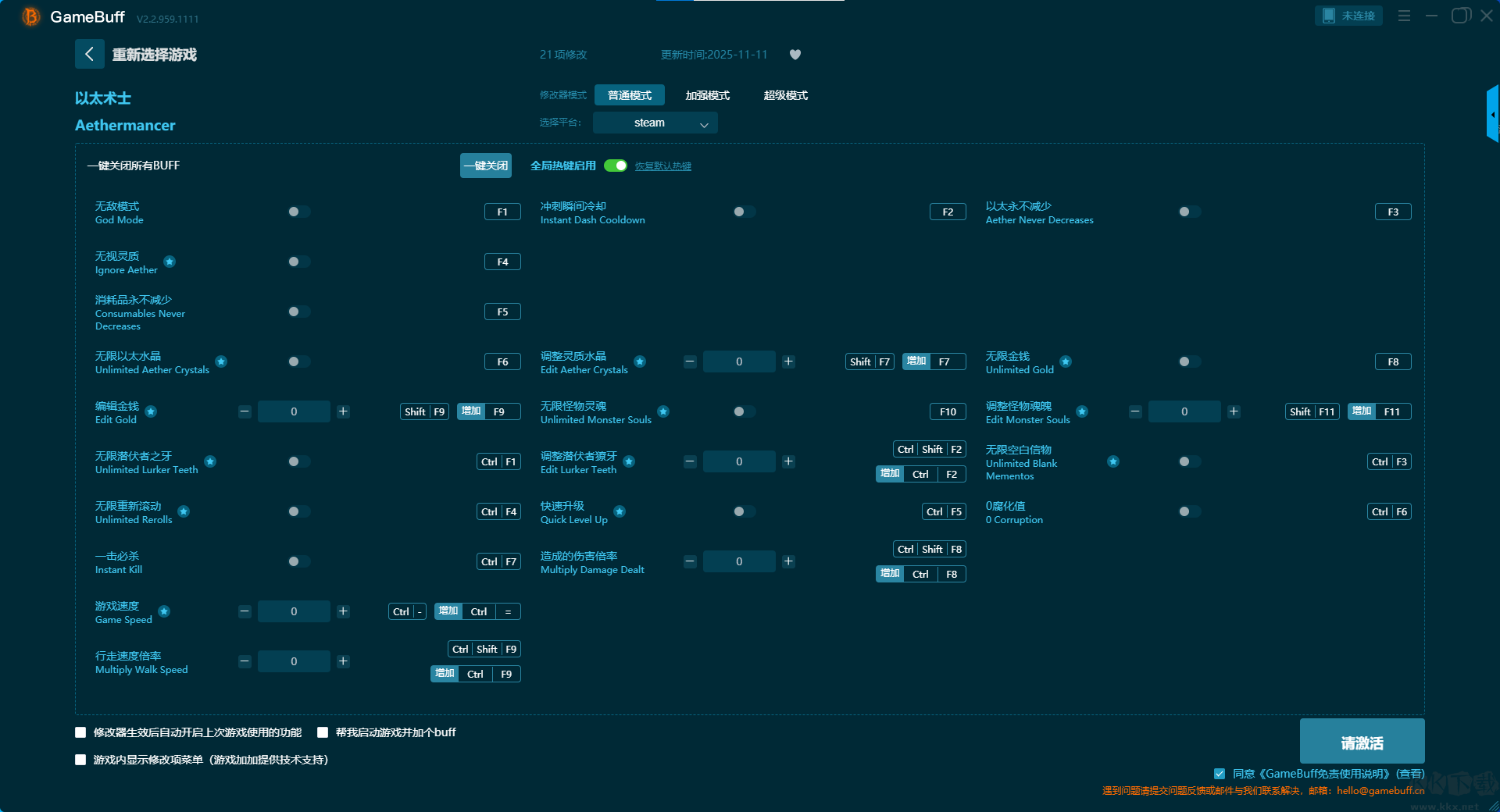 以太术士二十一项修改器pc单机版是一款可为游戏以太术士进行游戏辅助修改的辅助工具。支持在steam平台使用。玩家可在普通模式中选择开启,无敌模式、冲刺瞬间冷却、以太永不减少、无视灵质、消耗品永不减少、无限以太水晶、调整灵质水晶等多达21项修改功能。快来KK下载站下载这款修改器体验吧。