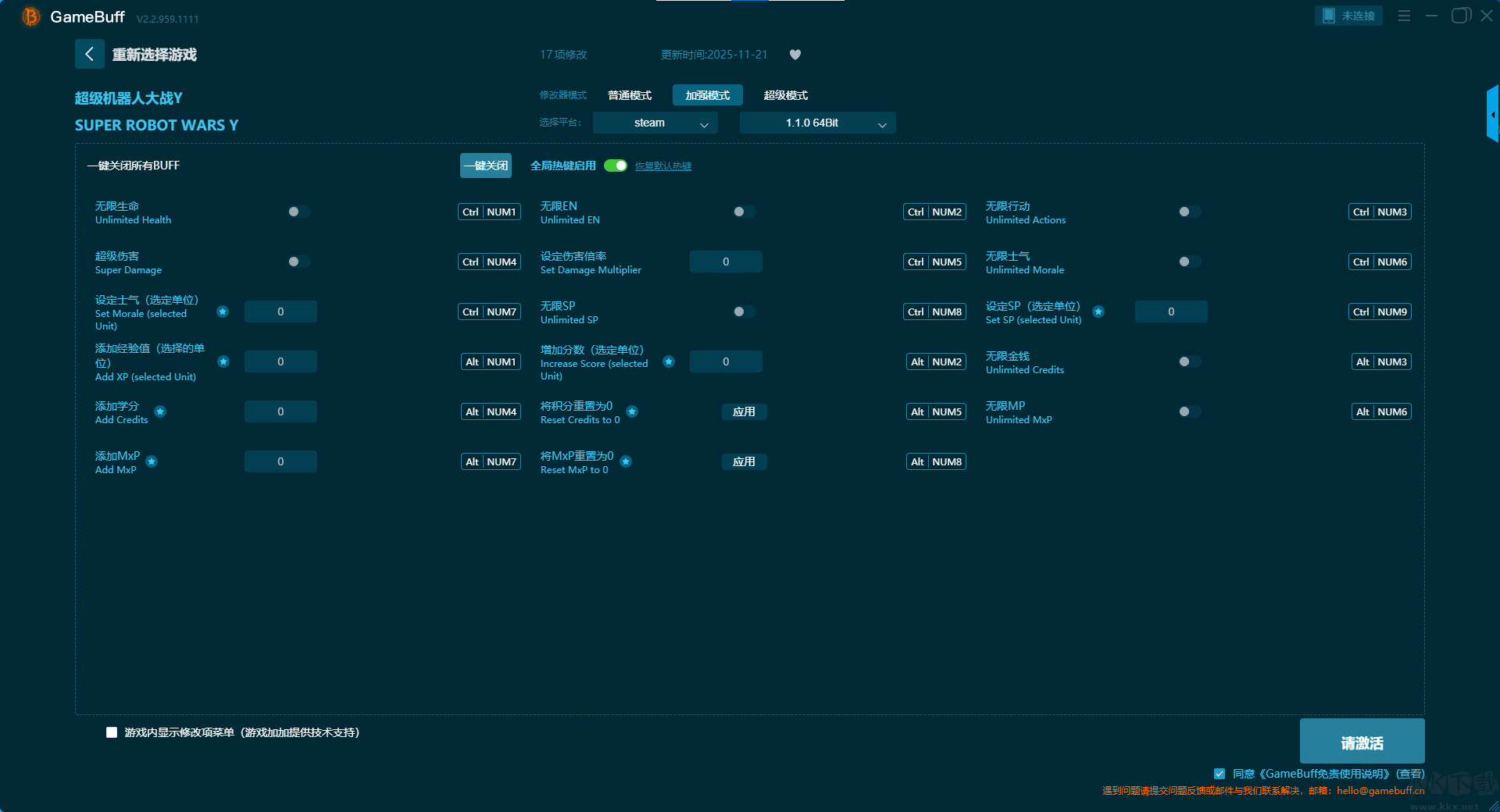 超级机器人大战Y十四项修改器pc正版加强模式(支持 17 项修改,不支持联网模式)