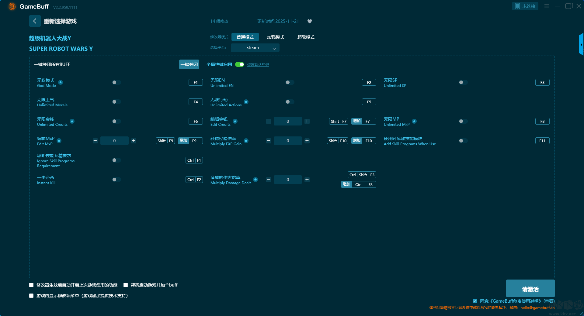 超级机器人大战Y十四项修改器pc正版超级模式(支持 11 项修改,不支持联网模式)
