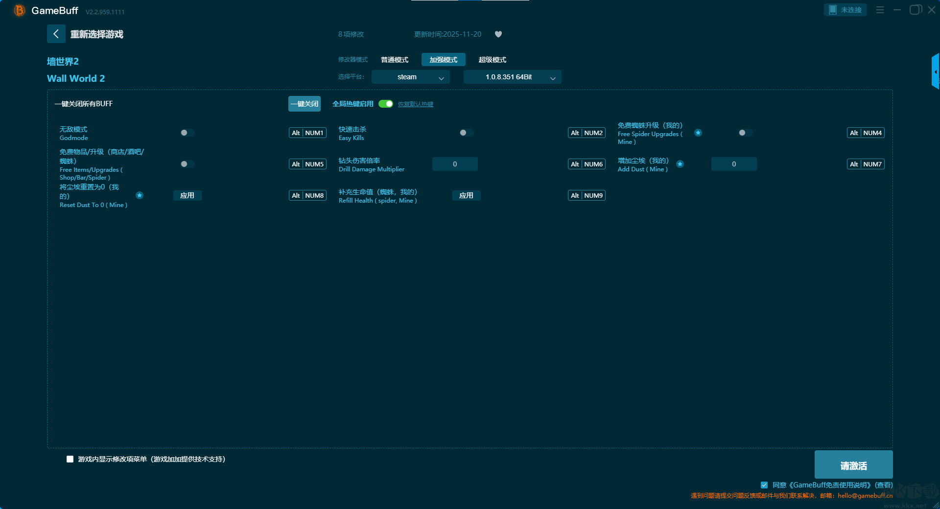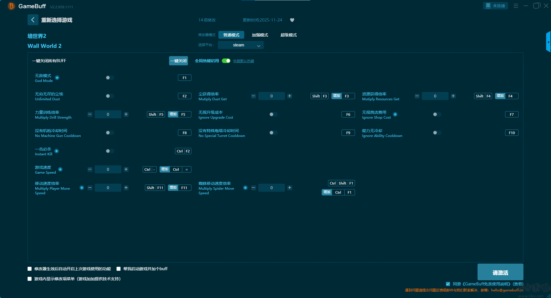 墙世界2十四项修改器pc中文版普通模式 (支持 14 项修改,不支持联网模式)