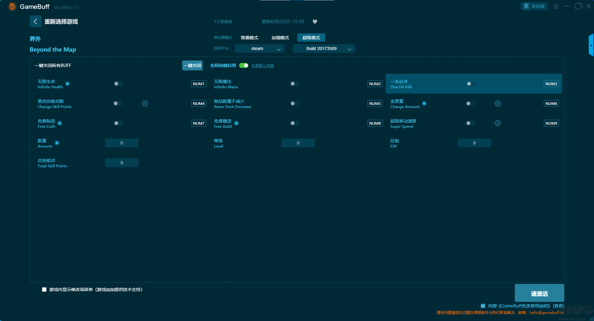 界外十二项修改器pc免费版是一款支持中文的强大游戏辅助修改器。玩家可在多项修改模式中选择一项修改模式开启使用,可在游玩中一键开启,无限生命、无限魔法、不会疲劳、技能快速冷却、快速击杀、隐身、无消耗打造 / 建造 / 使用物品、锁定时间等多项修改功能。快来KK下载站下载这款修改器体验使用一下吧。