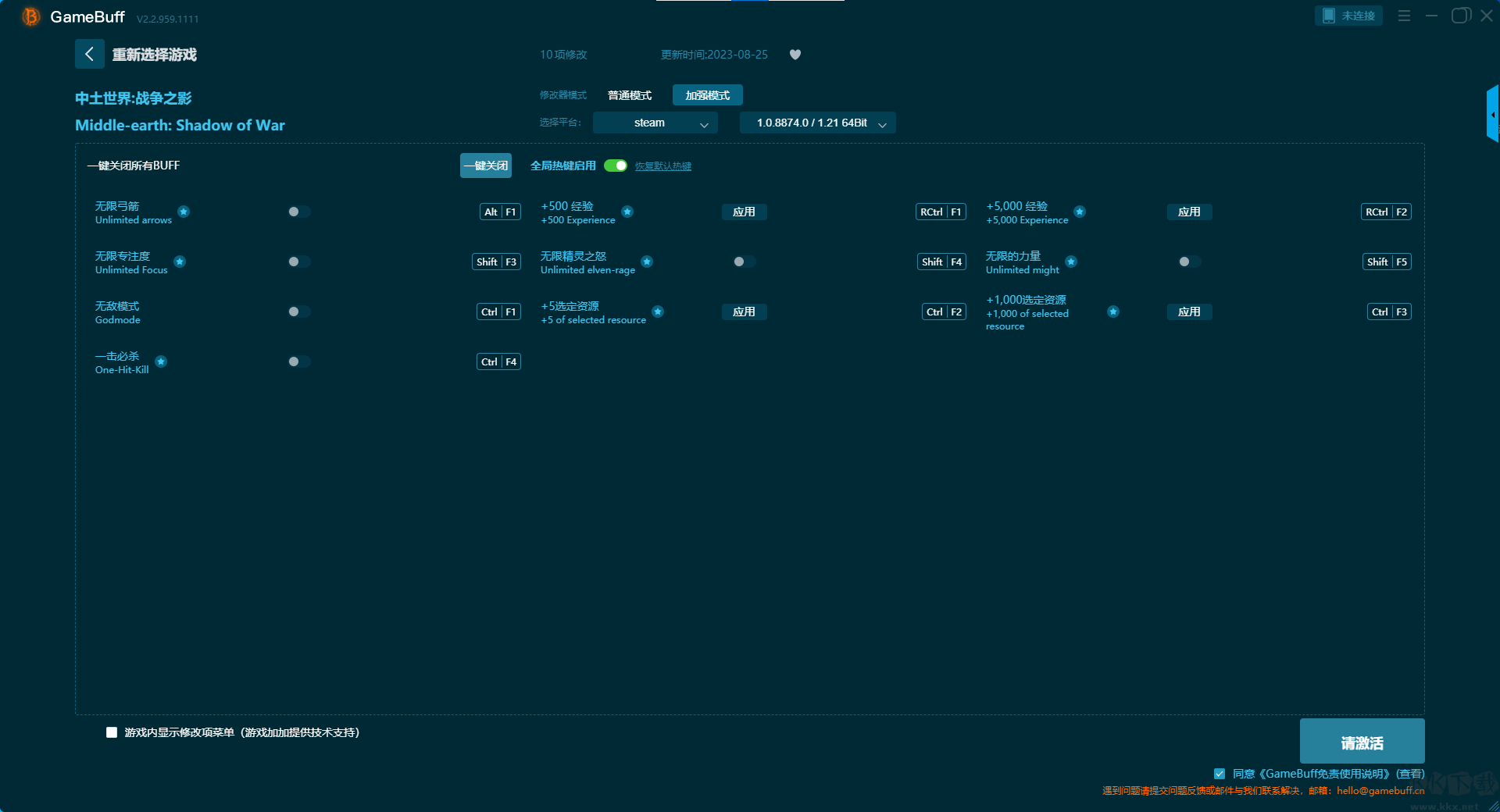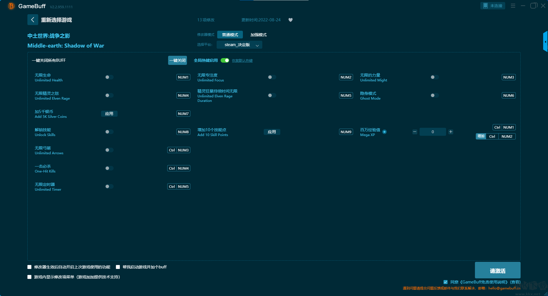中土世界战争之影十三项修改器pc正式版是一款专业的游戏辅助工具。这款修改器支持7000+游戏修改器,可在各大游戏平台使用。玩家可在游玩中土世界战争之影的过程中一键开启,无限生命、无限专注度、无限的力量、无限精灵之怒、精灵狂暴持续时间无限、隐身模式、解锁技能等修改功能。需要的小伙伴快来KK下载站下载体验吧。