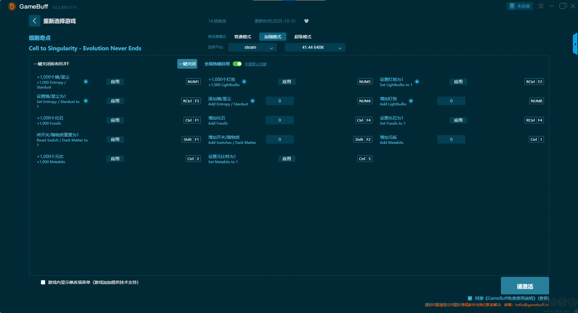 细胞奇点三项修改器pc豪华版普通模式修改功能介绍