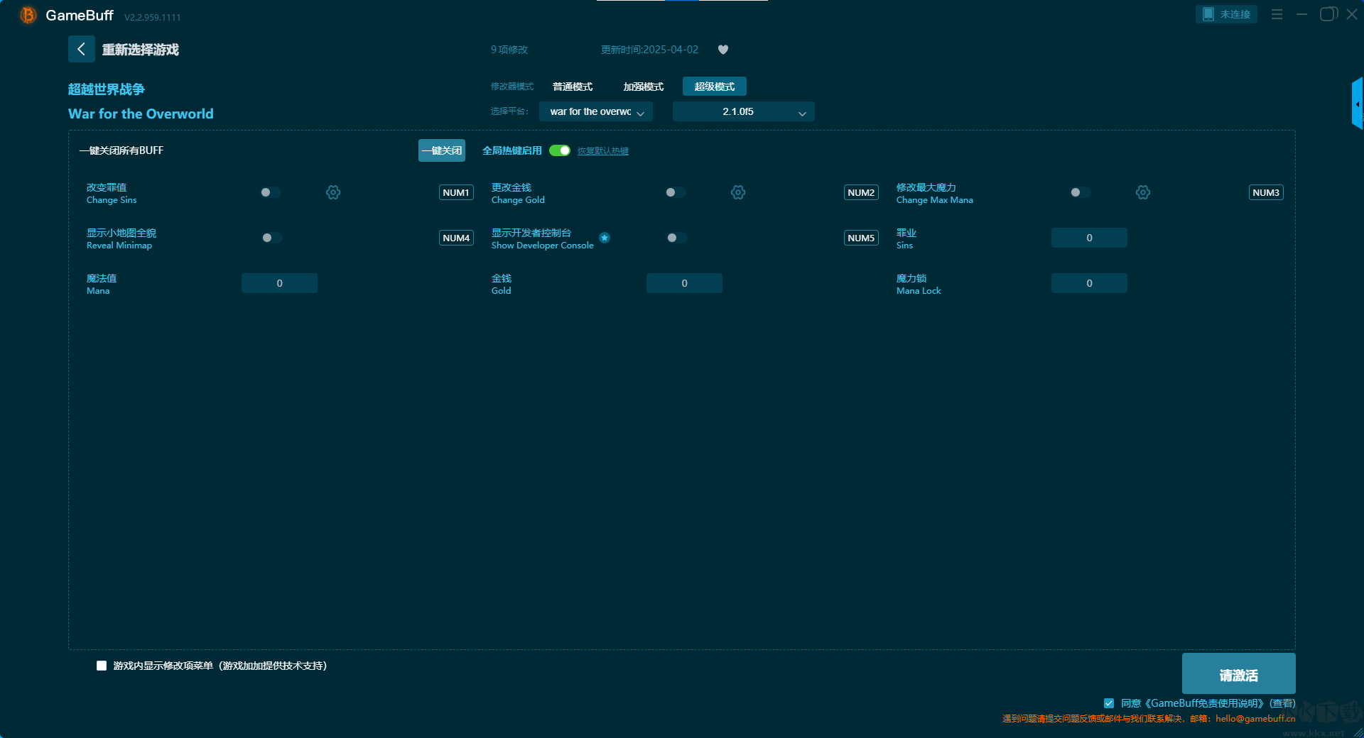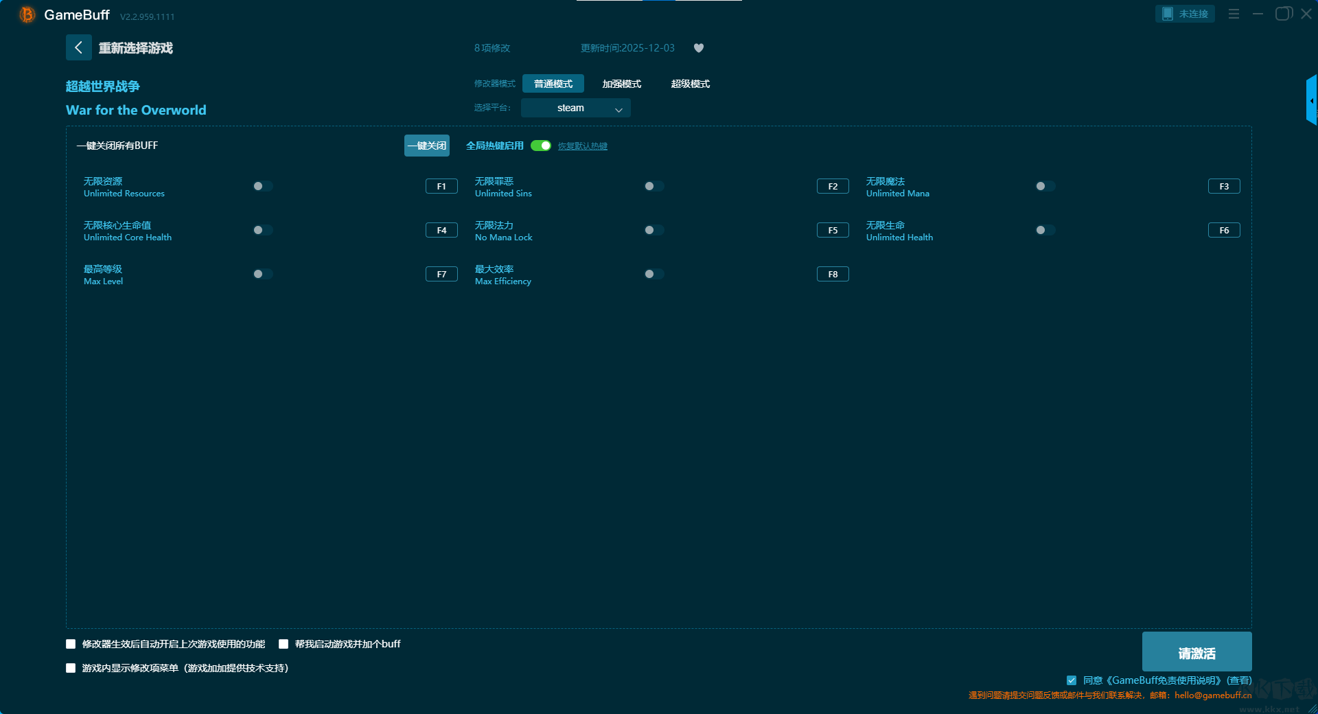 超越世界战争八项修改器pc国际版是一款专业强大的游戏辅助修改工具,玩家可在这款修改器中一键开启,无限资源、无限罪孽、无限魔法、无限核心生命值、无限法力、无限生命、最高等级、最大效率等多项普通模式修改器功能,支持在steam平台使用。需要的小伙伴快来KK下载站下载体验一下吧。