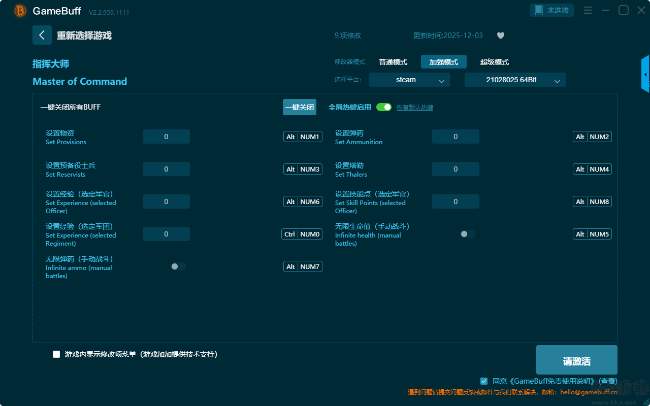 Master of Command八项修改器pc纯绿版修改器操作步骤