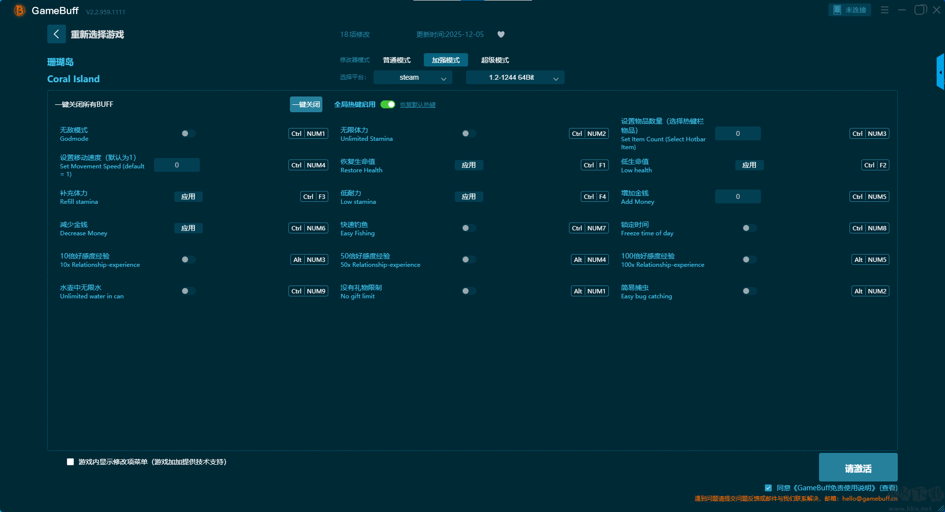 珊瑚岛二十三项修改器pc官方版加强模式修改功能介绍