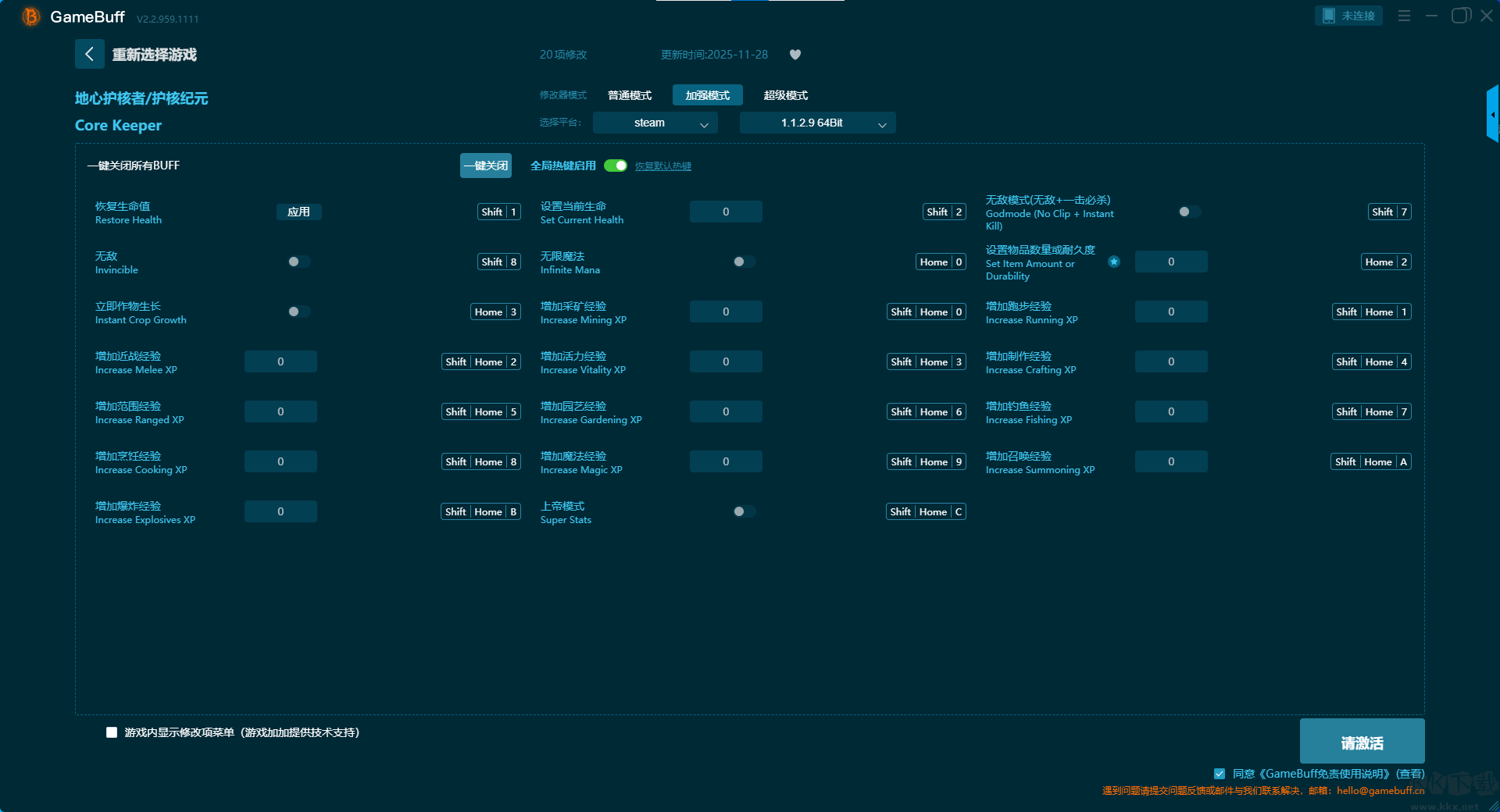 Core Keeper十一项修改器pc正版超级模式 (支持 2 项修改,不支持联网模式)