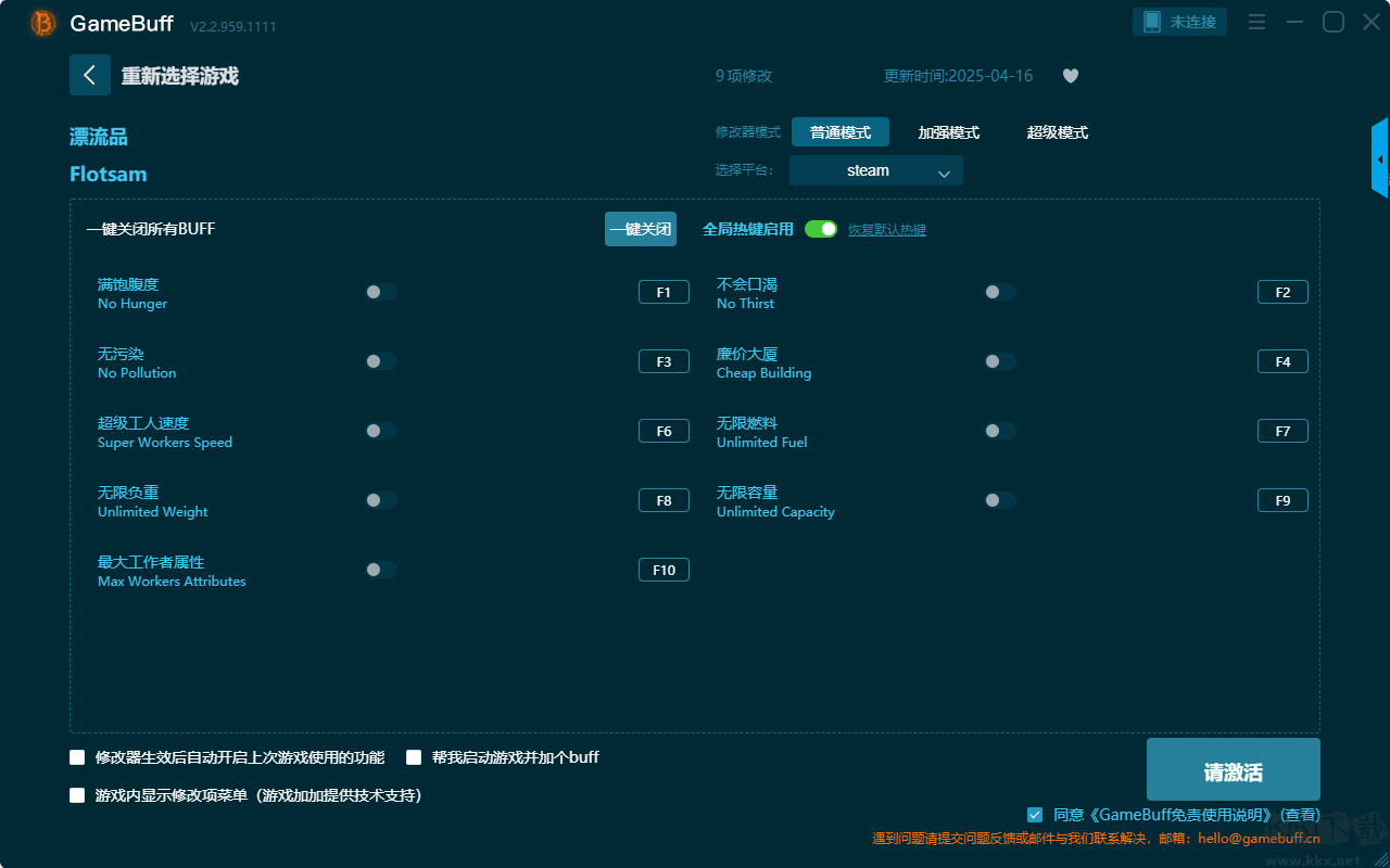 漂流品九项修改器pc完整版是一款专为游戏漂流品所打造的游戏辅助工具,支持玩家在steam平台使用,可为7000+游戏进行游戏辅助修改。玩家可在游戏漂流品的游玩过程中一键开启,满腹饱度、不会口渴、无污染、廉价大量、超级工人速度、无限燃料、无限负重、无限容量、最大工作者属性等修改功能。快来KK下载站下载体验一下吧。