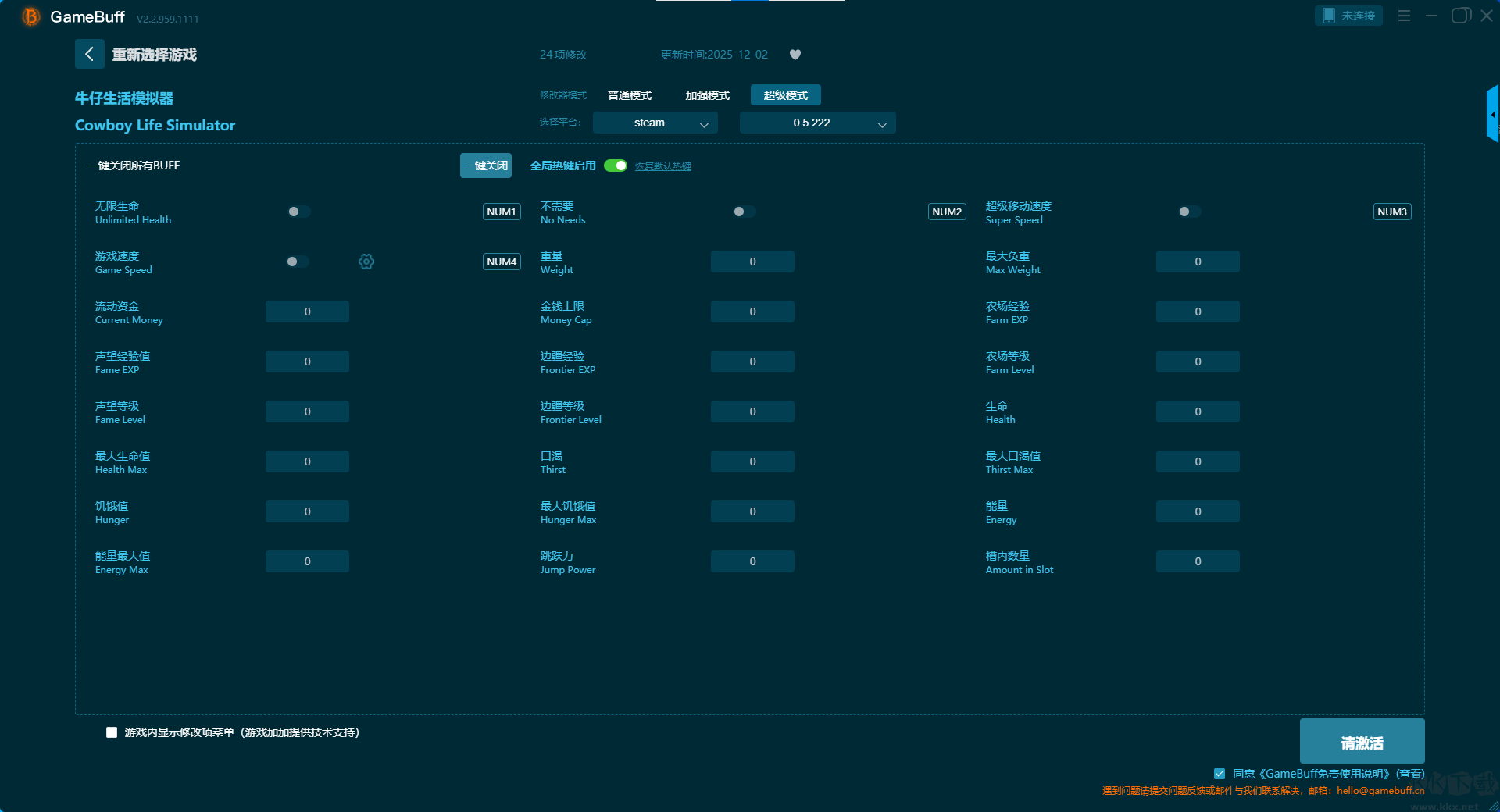 牛仔生活模拟器二十项修改器pc专业版超级模式 (支持 24 项修改,不支持联网模式)