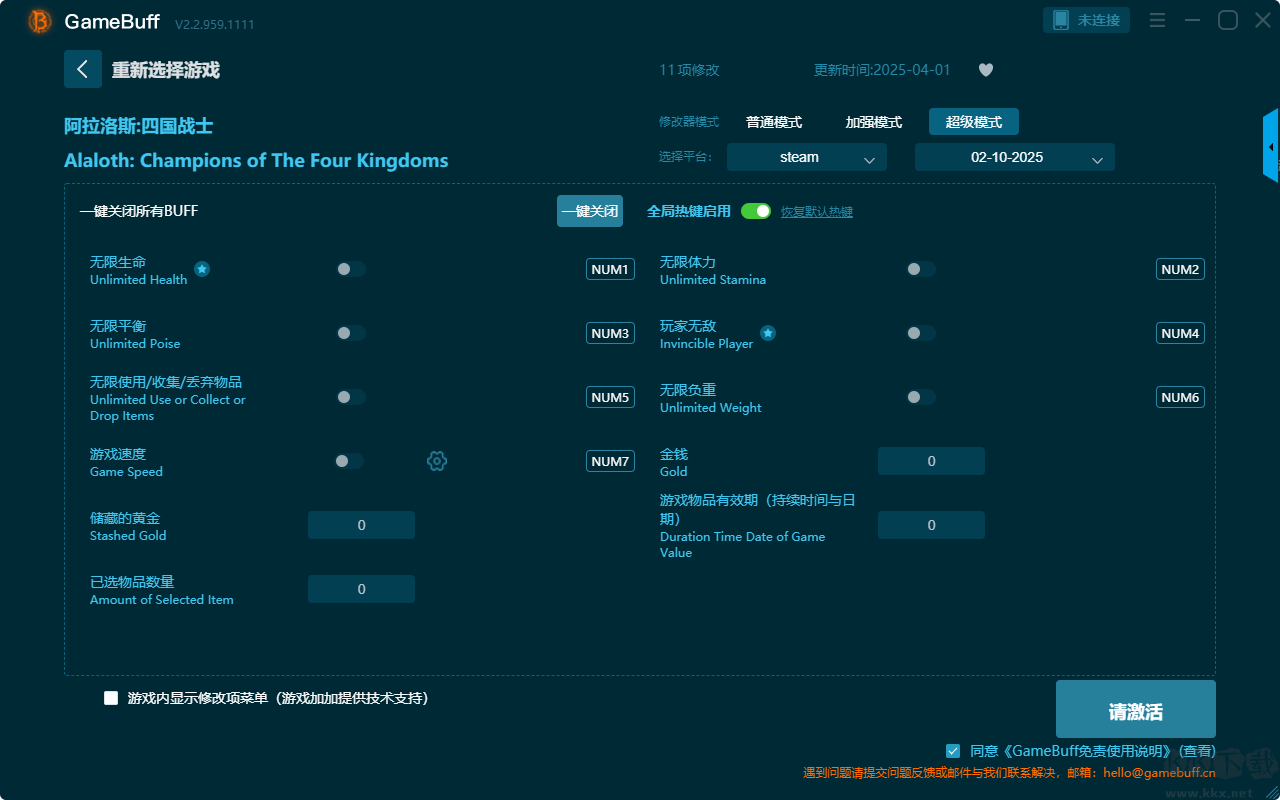阿拉洛斯四国战士八项修改器pc中文版超级模式修改功能介绍