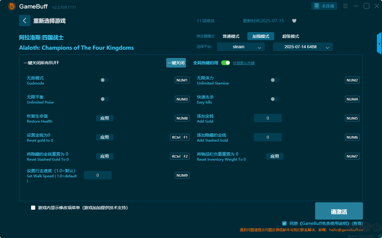 阿拉洛斯四国战士八项修改器pc中文版加强模式修改功能介绍