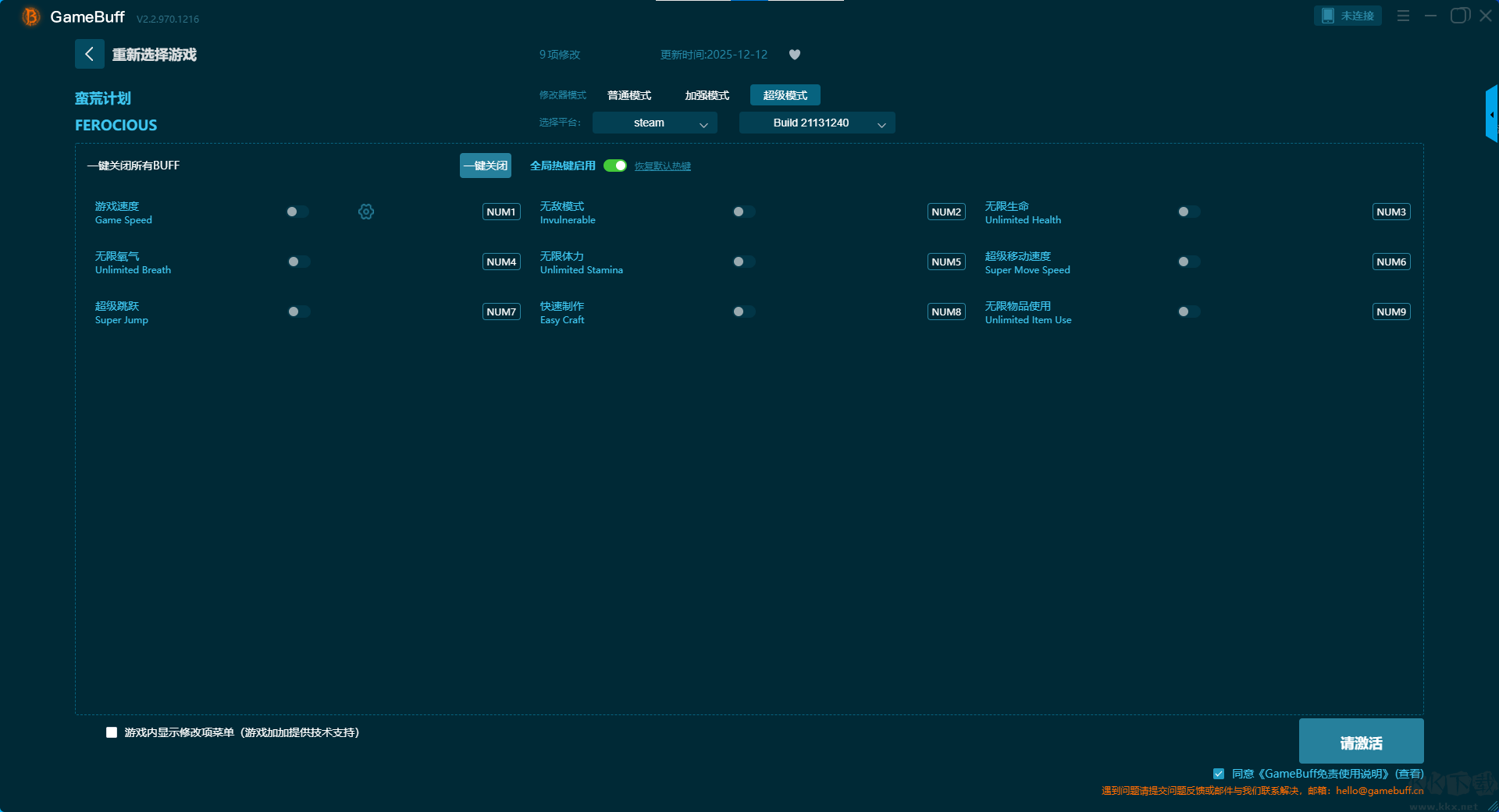 蛮荒计划九项修改器pc官方版超级模式 (支持 9 项修改,不支持联网模式)