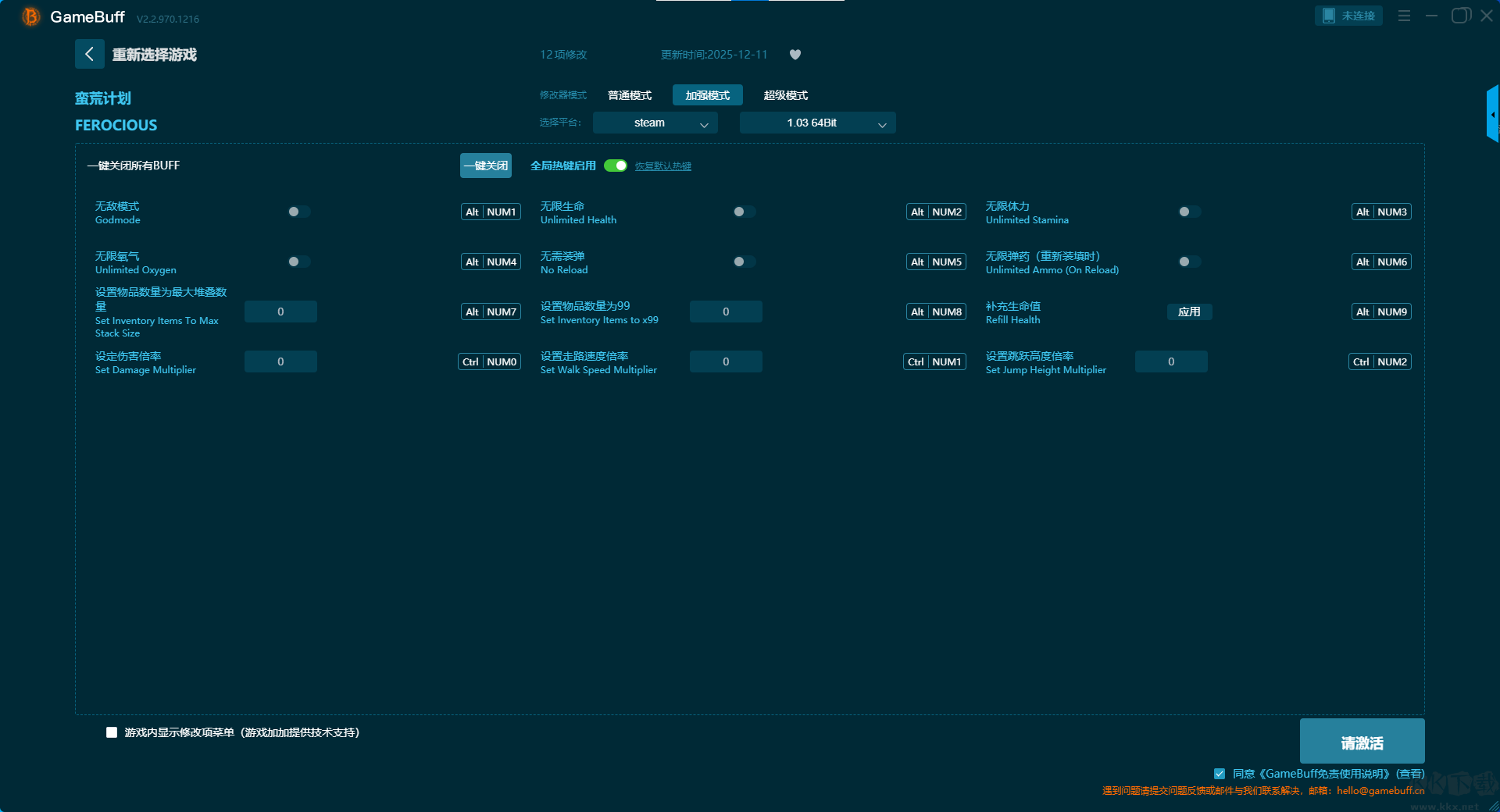 蛮荒计划九项修改器pc官方版加强模式 (支持 12 项修改,不支持联网模式)