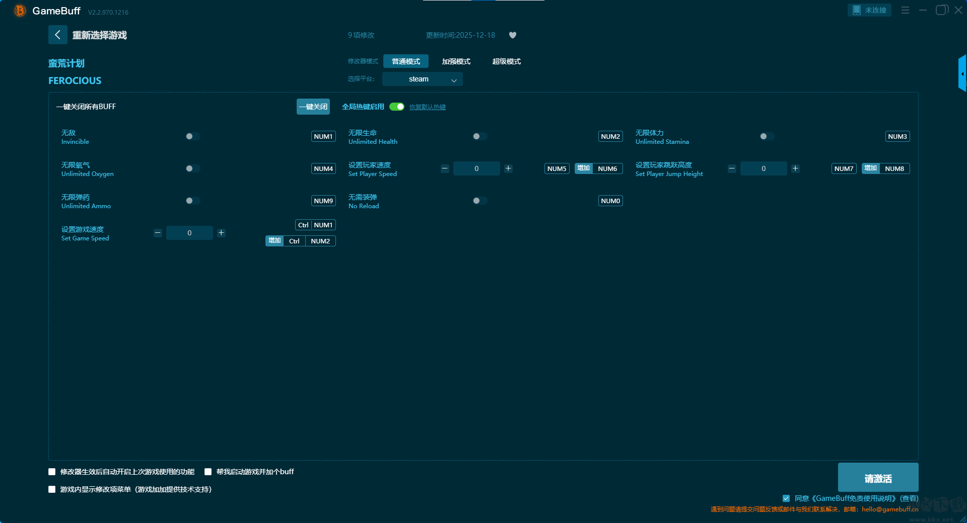 蛮荒计划九项修改器pc官方版普通模式 (支持 9 项修改,不支持联网模式)