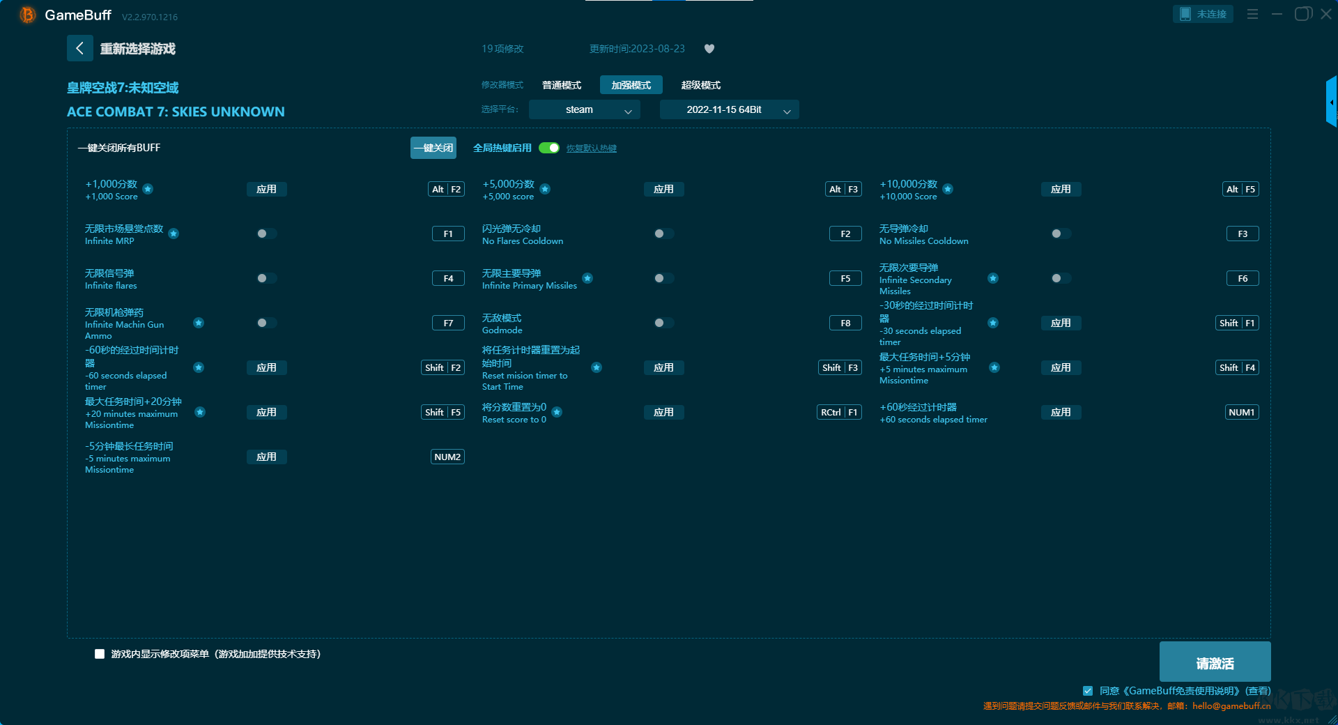 皇牌空战7未知空域七项修改器pc中文版加强模式修改功能介绍