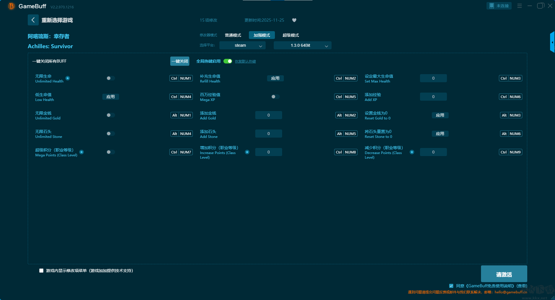 阿喀琉斯幸存者二十七项修改器pc最终版加强模式 (支持 15 项修改,不支持联网模式)
