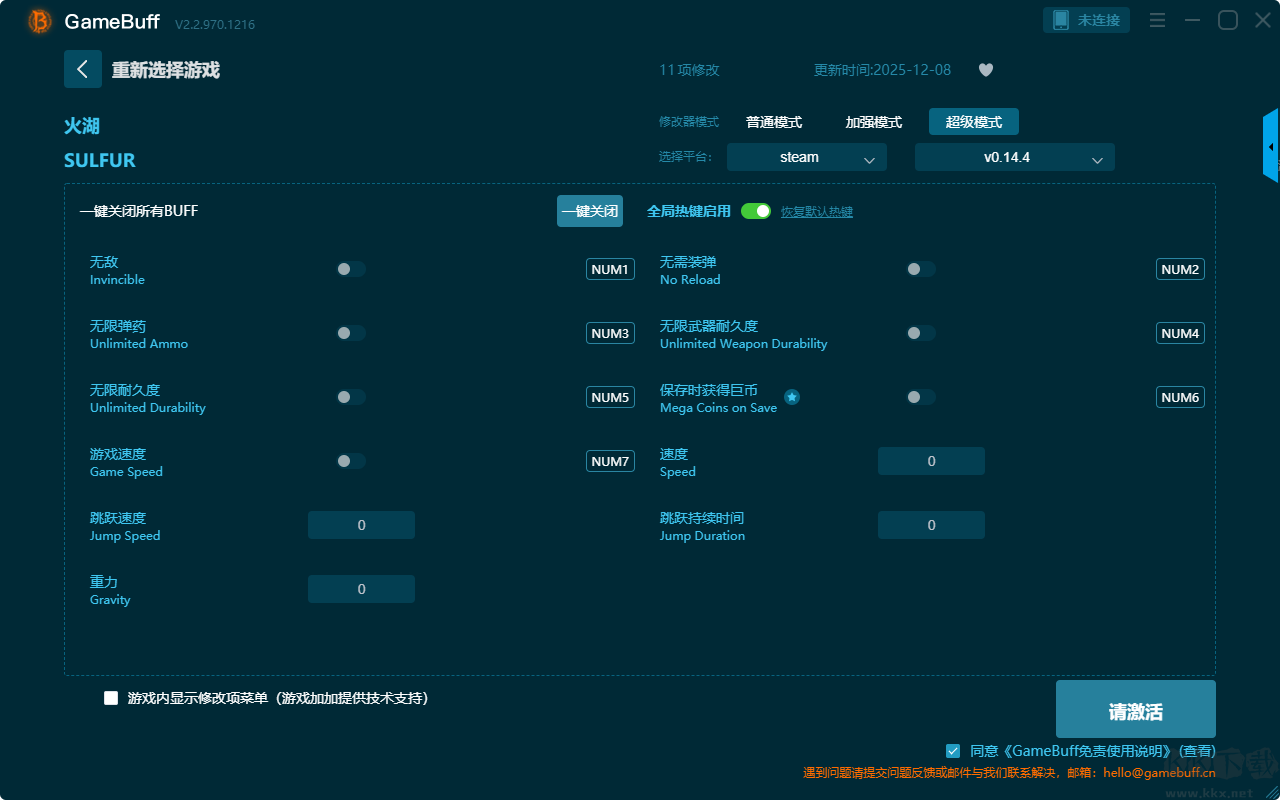 SULFUR六项修改器pc专业版超级模式修改功能介绍