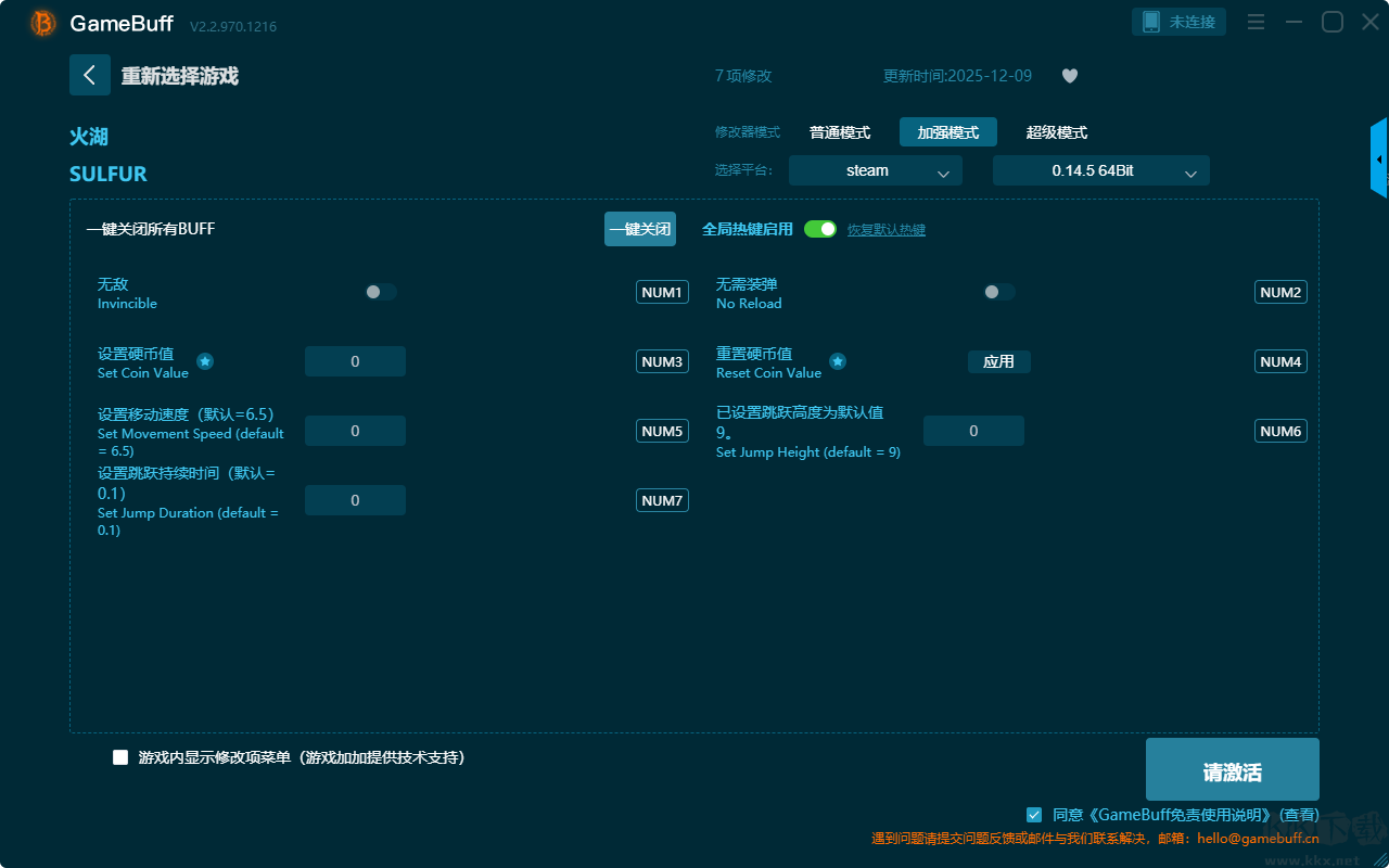 SULFUR六项修改器pc专业版加强模式修改功能介绍