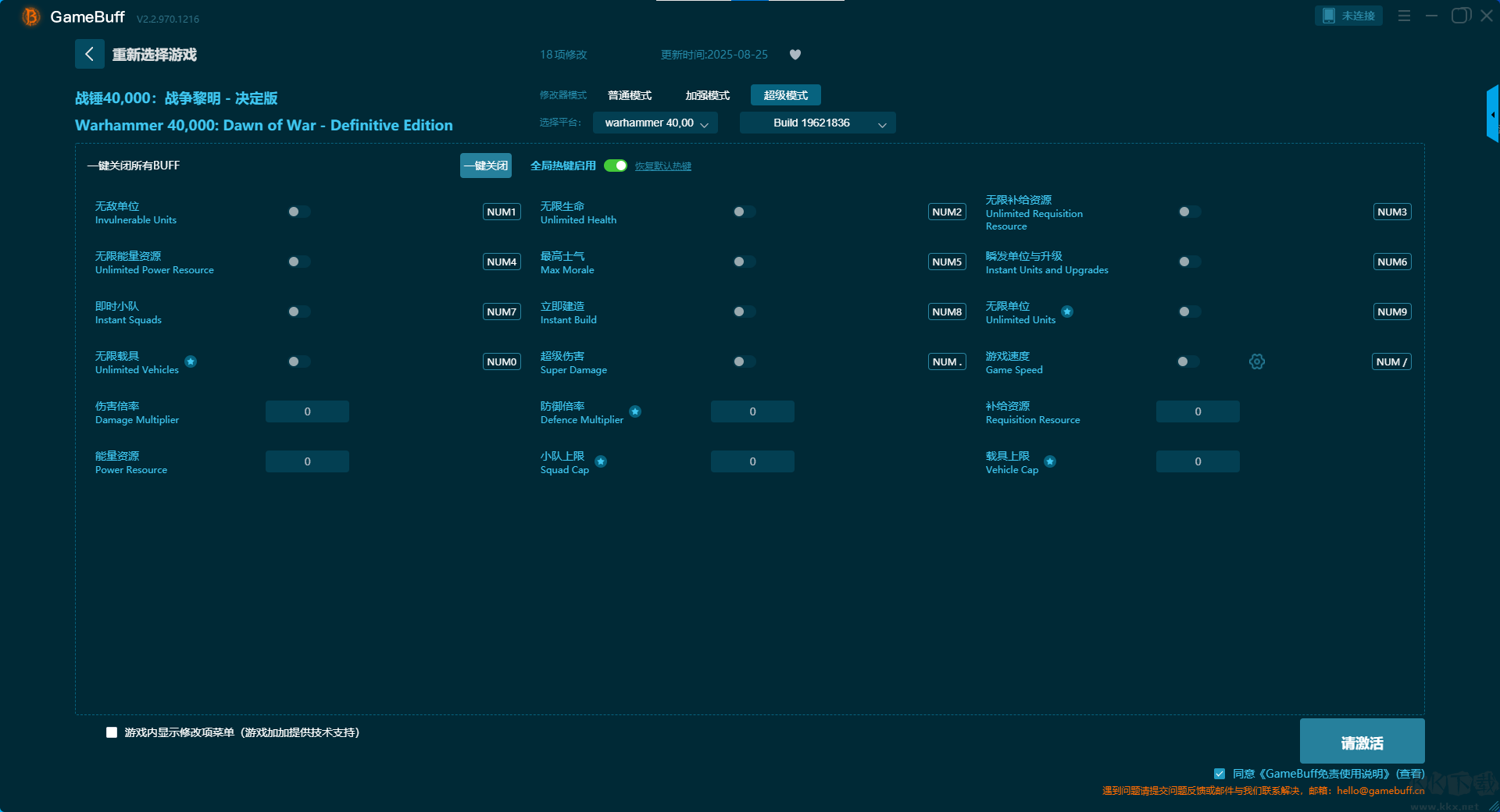 战锤40000战争黎明二十项修改器pc单机版超级模式(支持 18 项修改,不支持联网模式)
