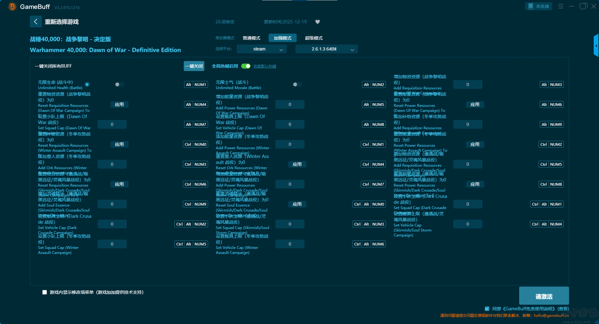 战锤40000战争黎明二十项修改器pc单机版加强模式(支持 26 项修改,不支持联网模式)