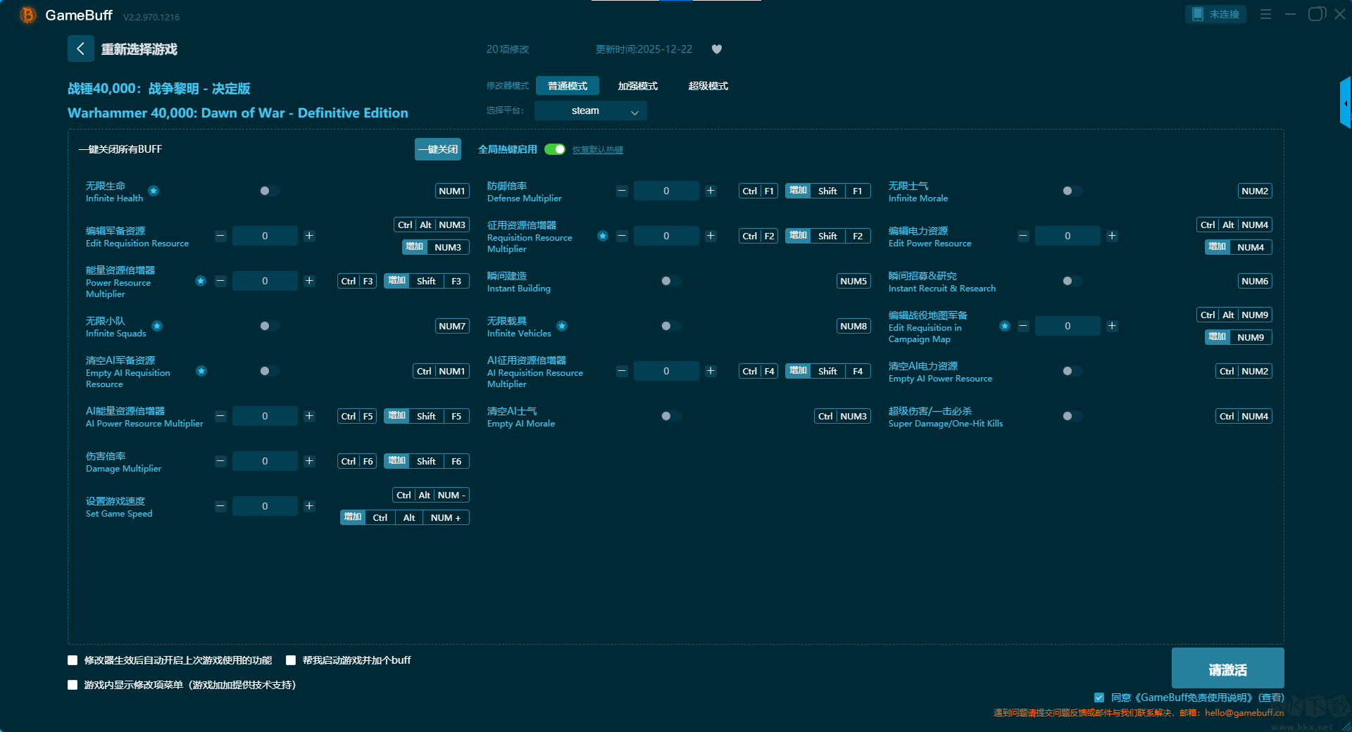 战锤40000战争黎明二十项修改器pc单机版普通模式(支持 20 项修改,不支持联网模式)