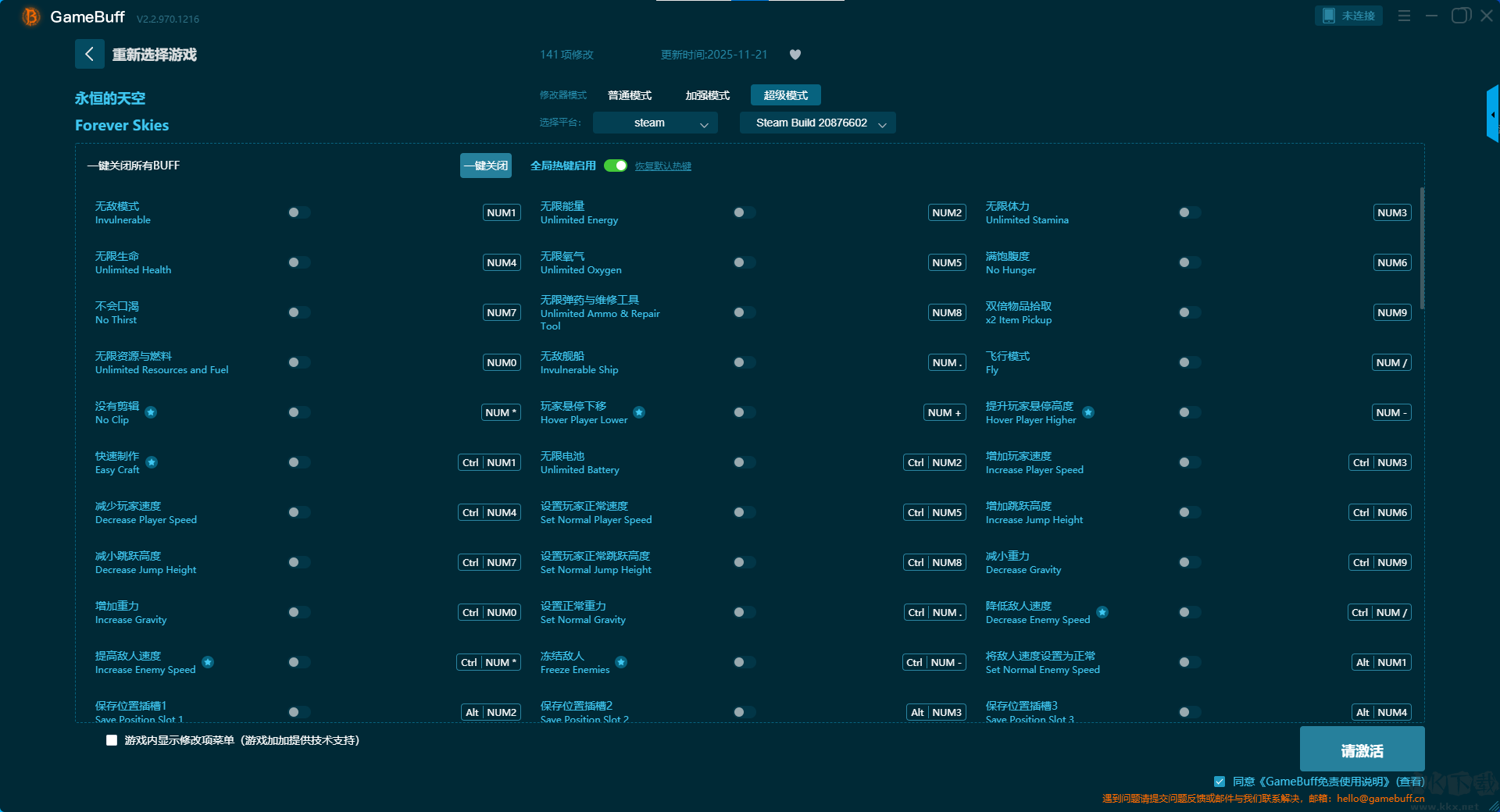 Forever Skies二十二项修改器pc绿色版超级模式修改功能介绍