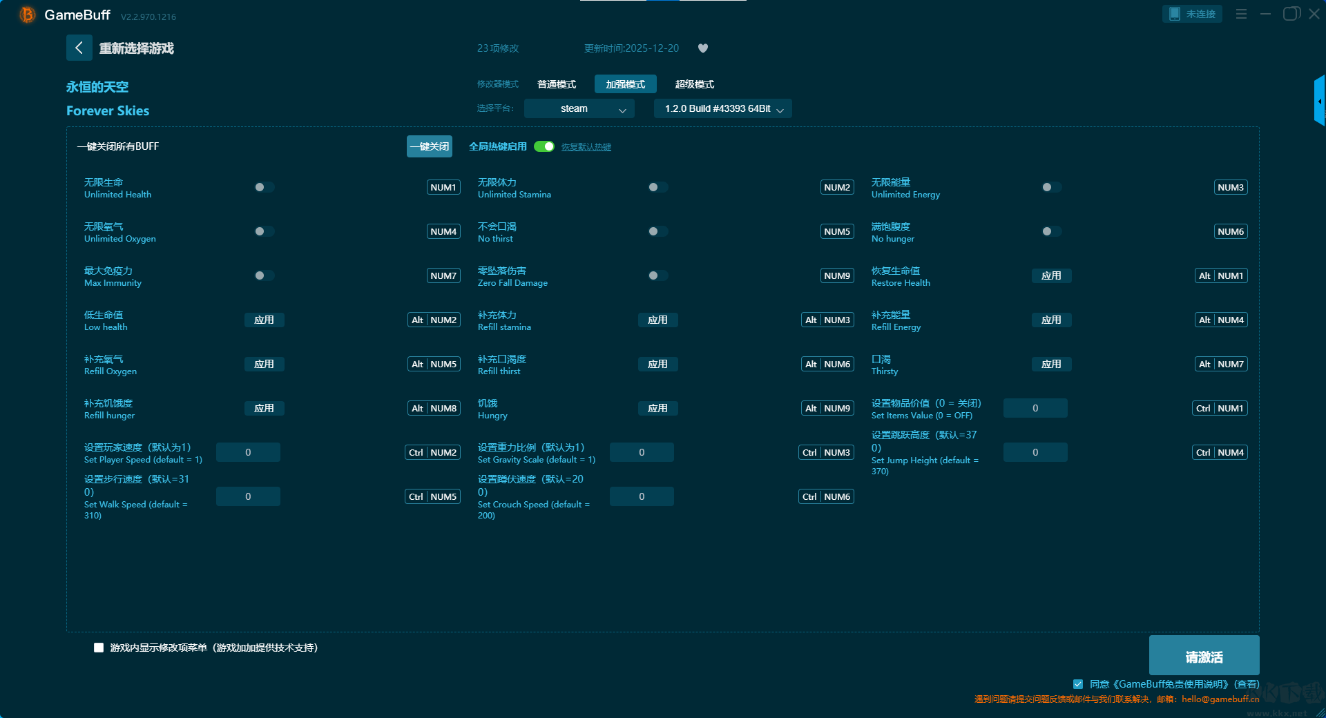 Forever Skies二十二项修改器pc绿色版加强模式修改功能介绍