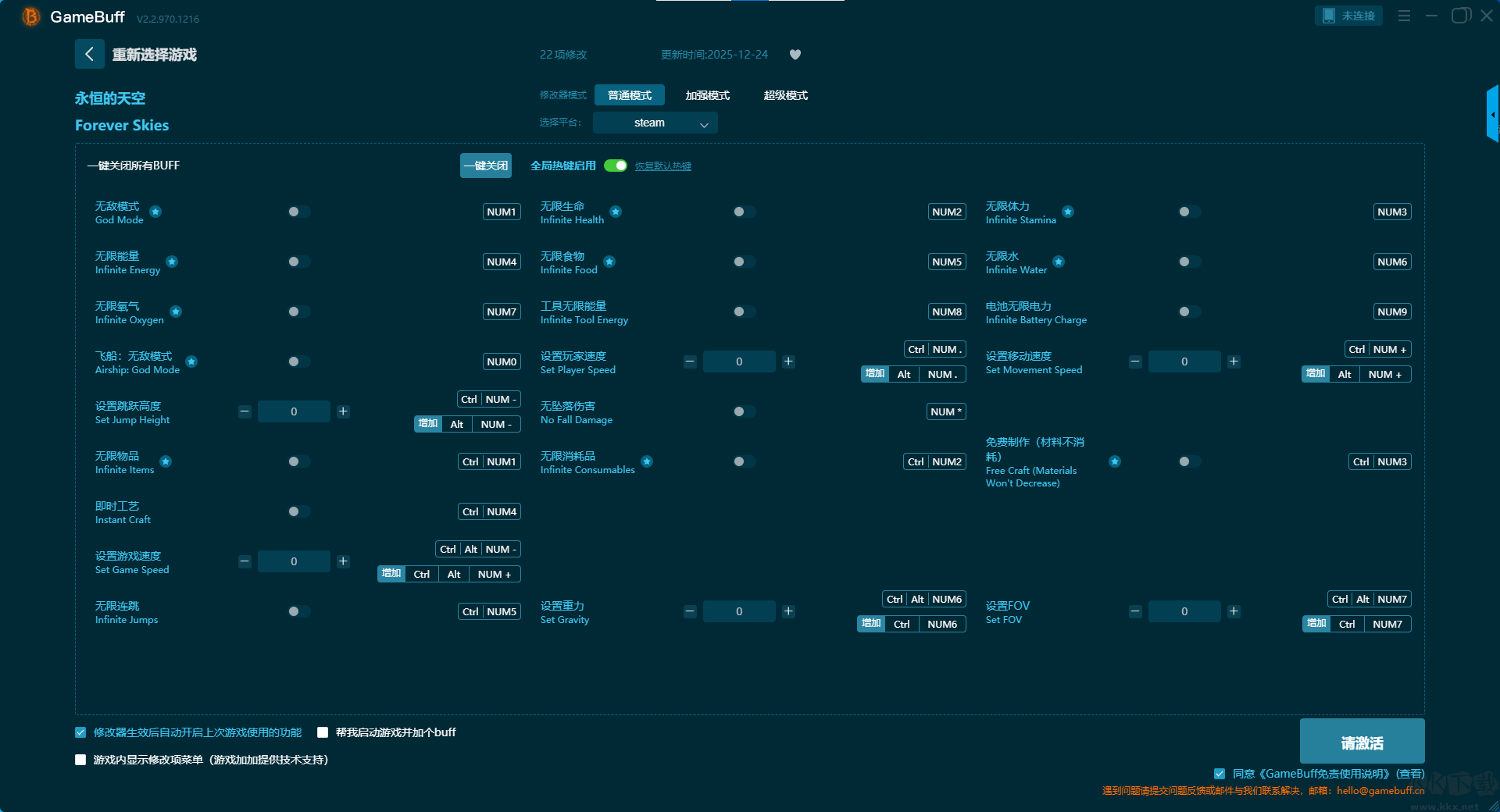 Forever Skies二十二项修改器pc绿色版普通模式修改功能介绍