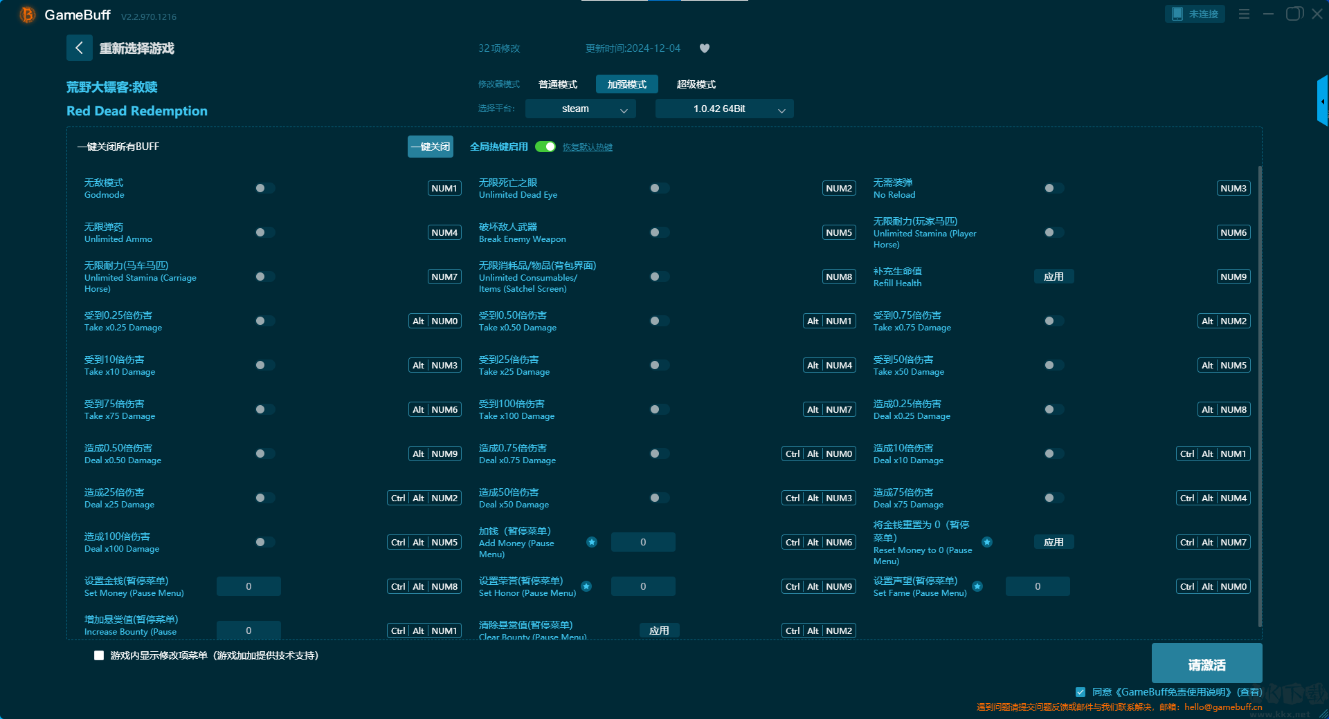 荒野大镖客救赎十一项修改器pc免费版加强模式修改功能介绍