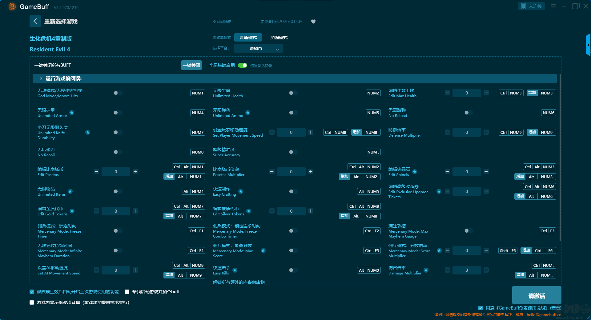 Resident Evil 4三十六项修改器pc最终版加强模式修改功能介绍