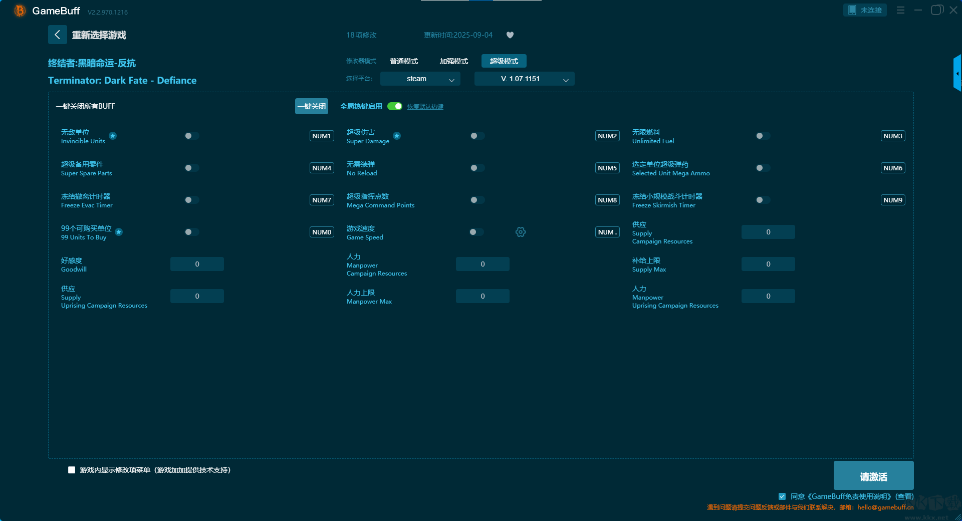 终结者黑暗命运反抗十三项修改器pc正版超级模式修改功能介绍