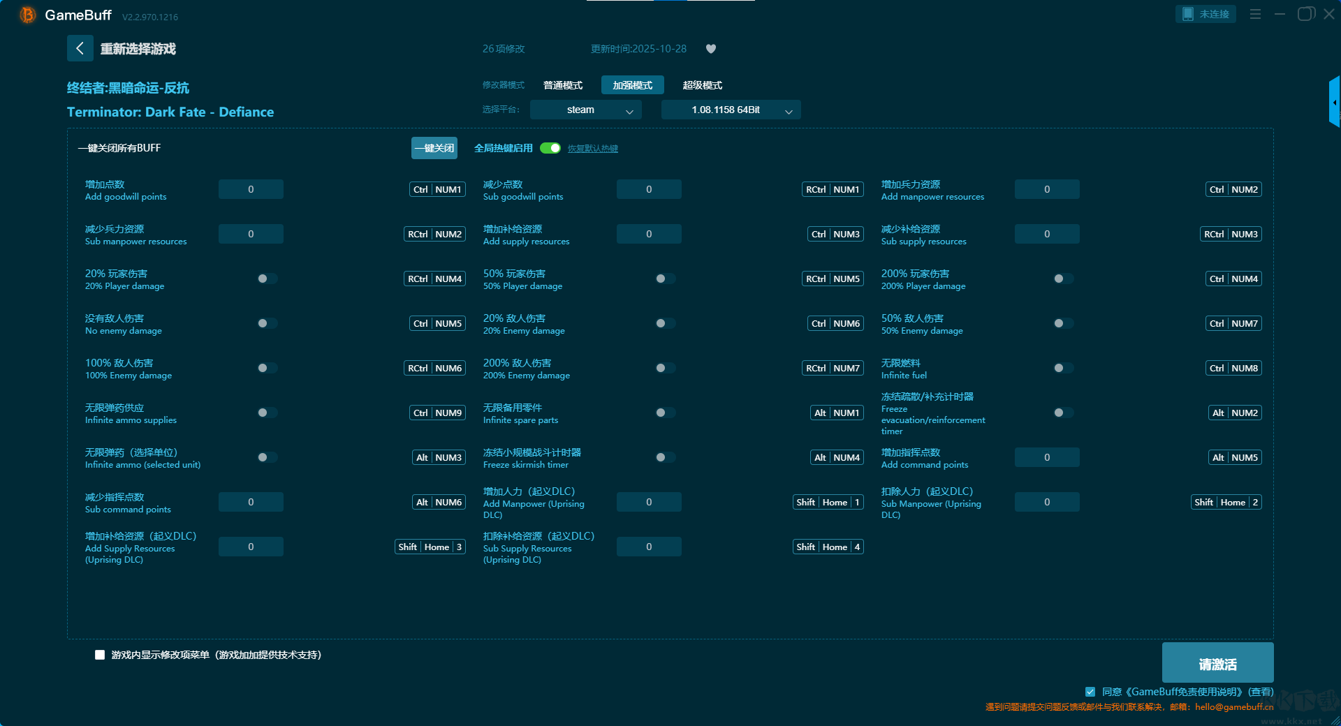 终结者黑暗命运反抗十三项修改器pc正版加强模式修改功能介绍