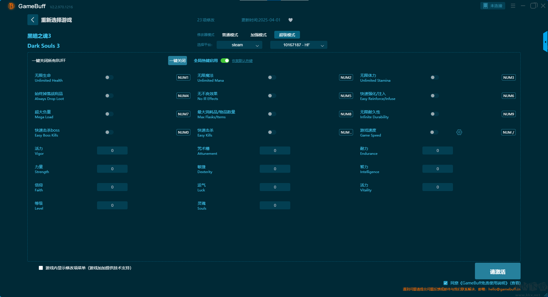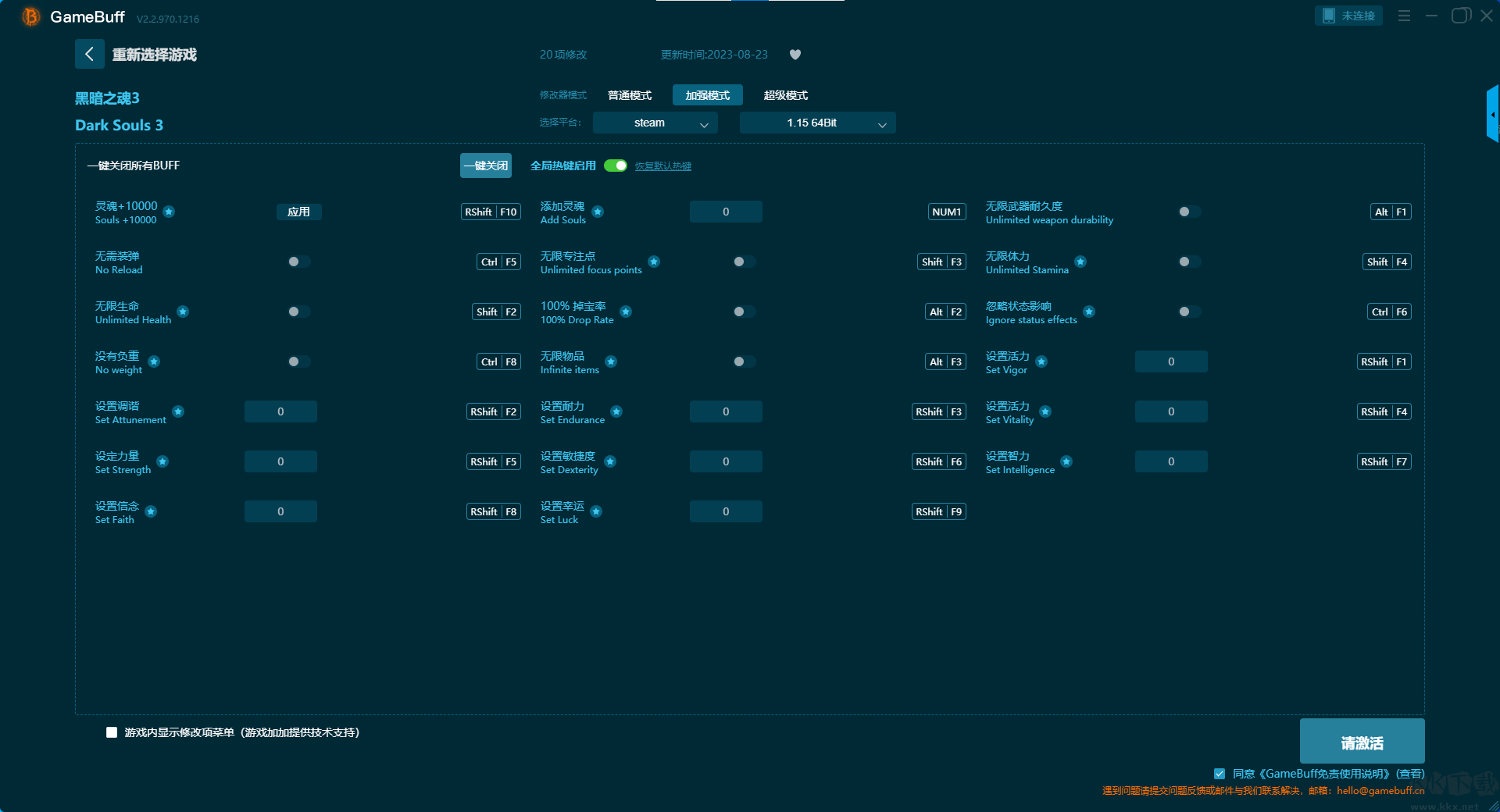 黑暗之魂3二十一项修改器pc正版加强模式修改功能介绍
