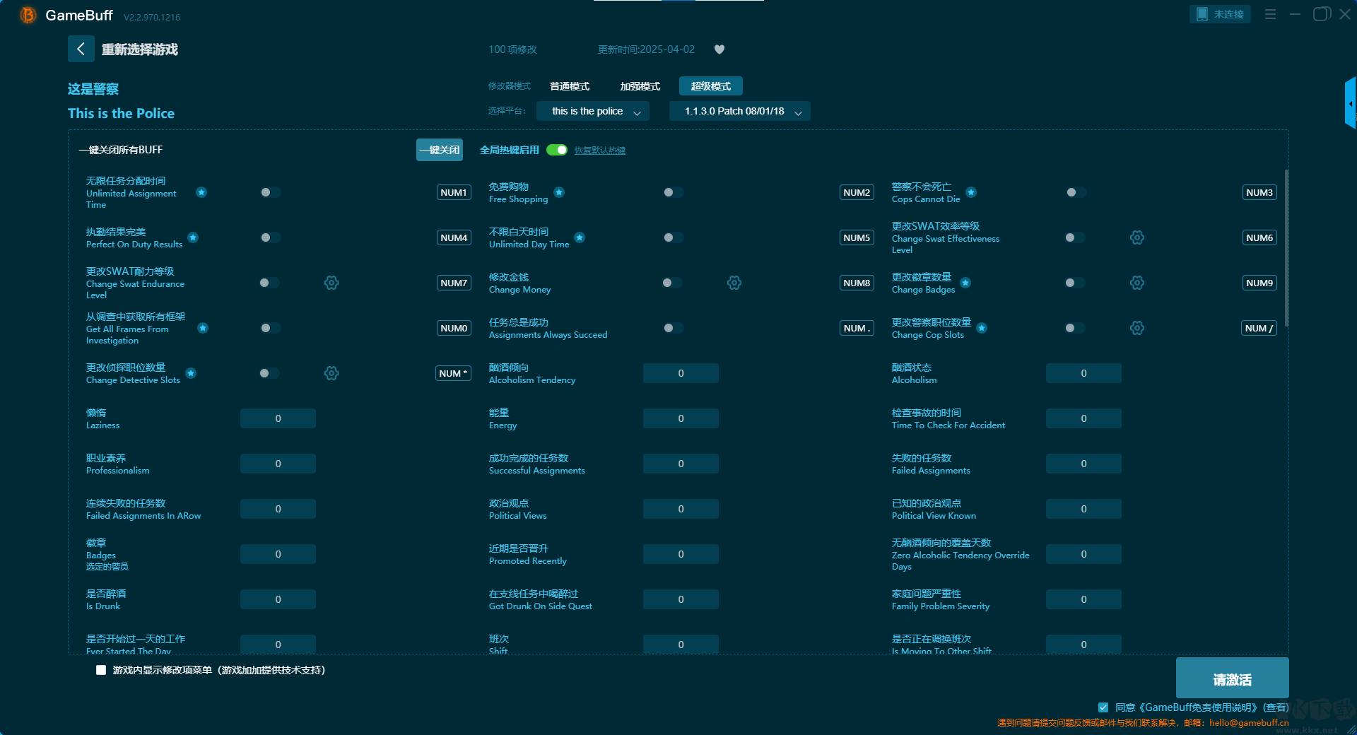 这是警察八项修改器pc完整版超级模式修改功能介绍