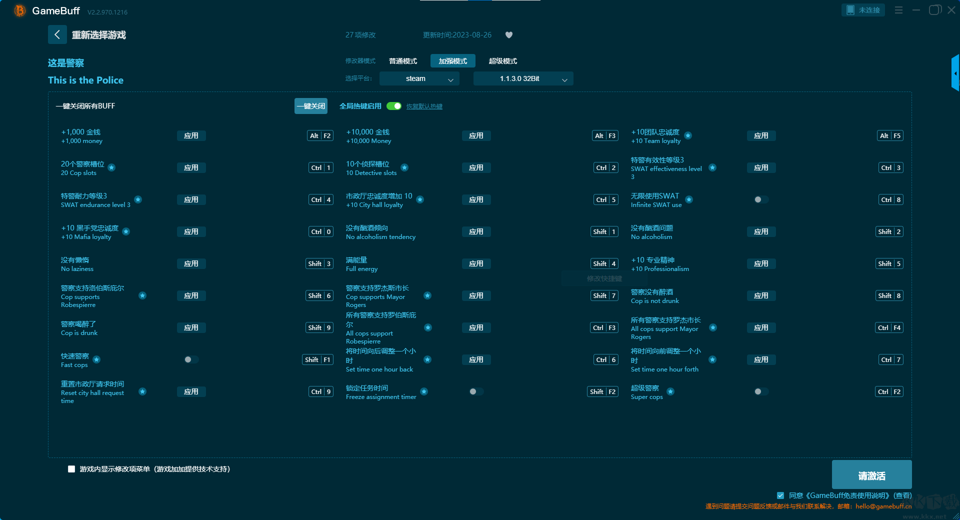 这是警察八项修改器pc完整版加强模式修改功能介绍