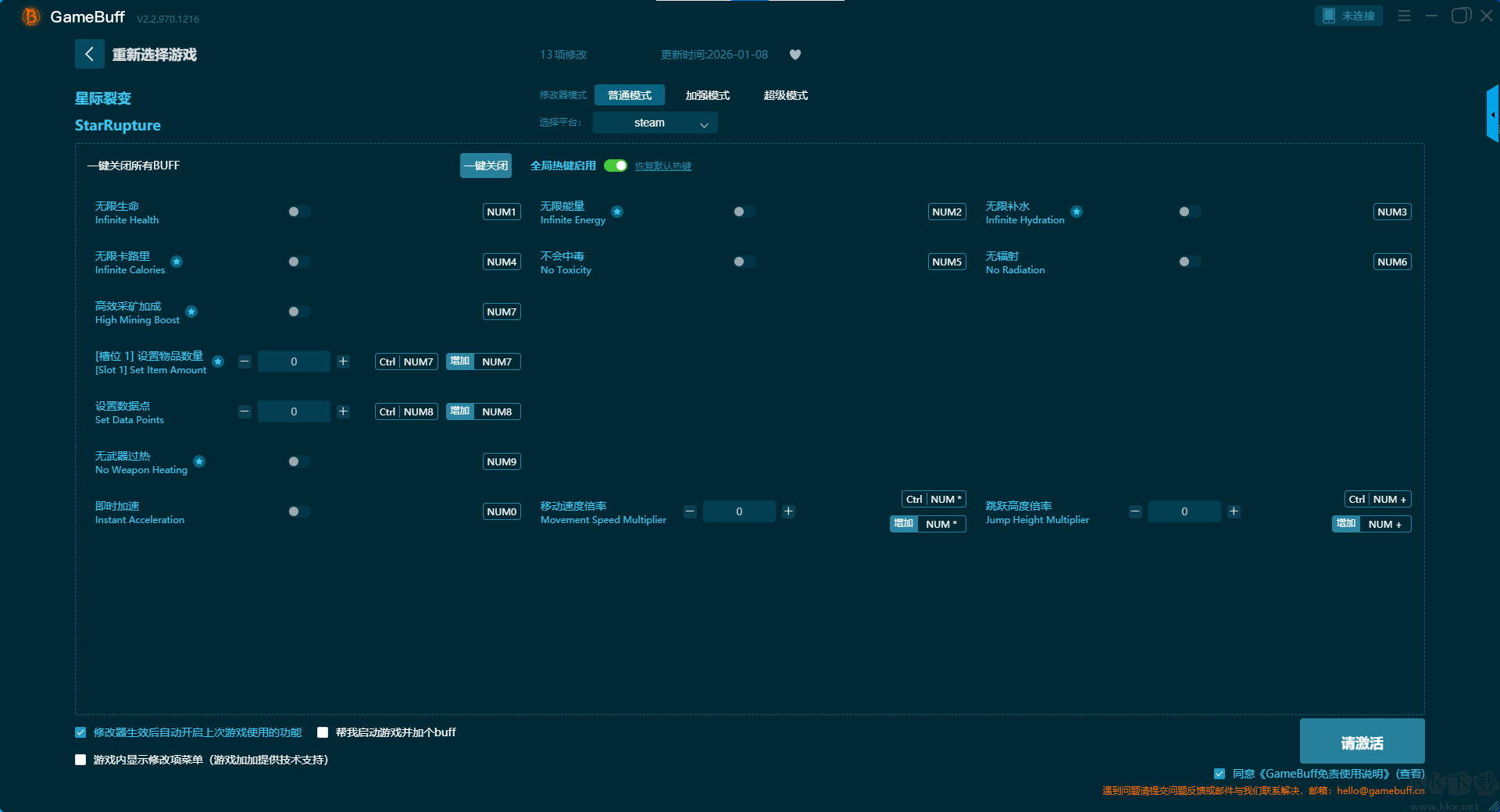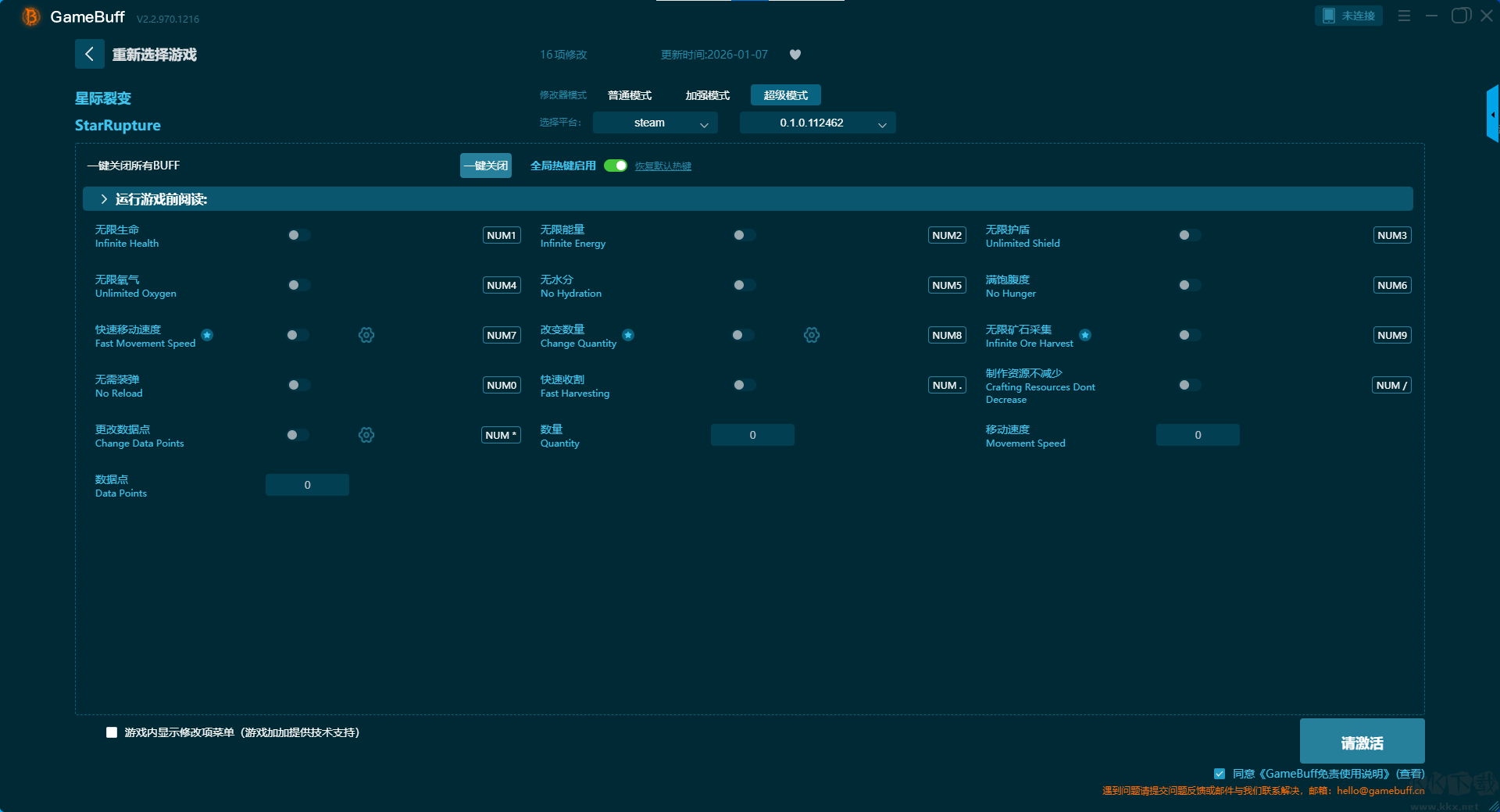 星际裂变十三项修改器pc最终版是一款专为PC单机游戏玩家打造的轻量级数据修改工具,集成了上千款热门游戏的修改功能,帮你简化繁琐的重复操作,降低上手门槛,让你更专注于游戏本身的乐趣。可以给星际裂变开启,无限生命、无限卡路里、高效采矿加成、[槽位 1] 设置物品数量、设置数据点、无武器过热、即时加速、无限能量等超多功能。快来下载体验一下吧。