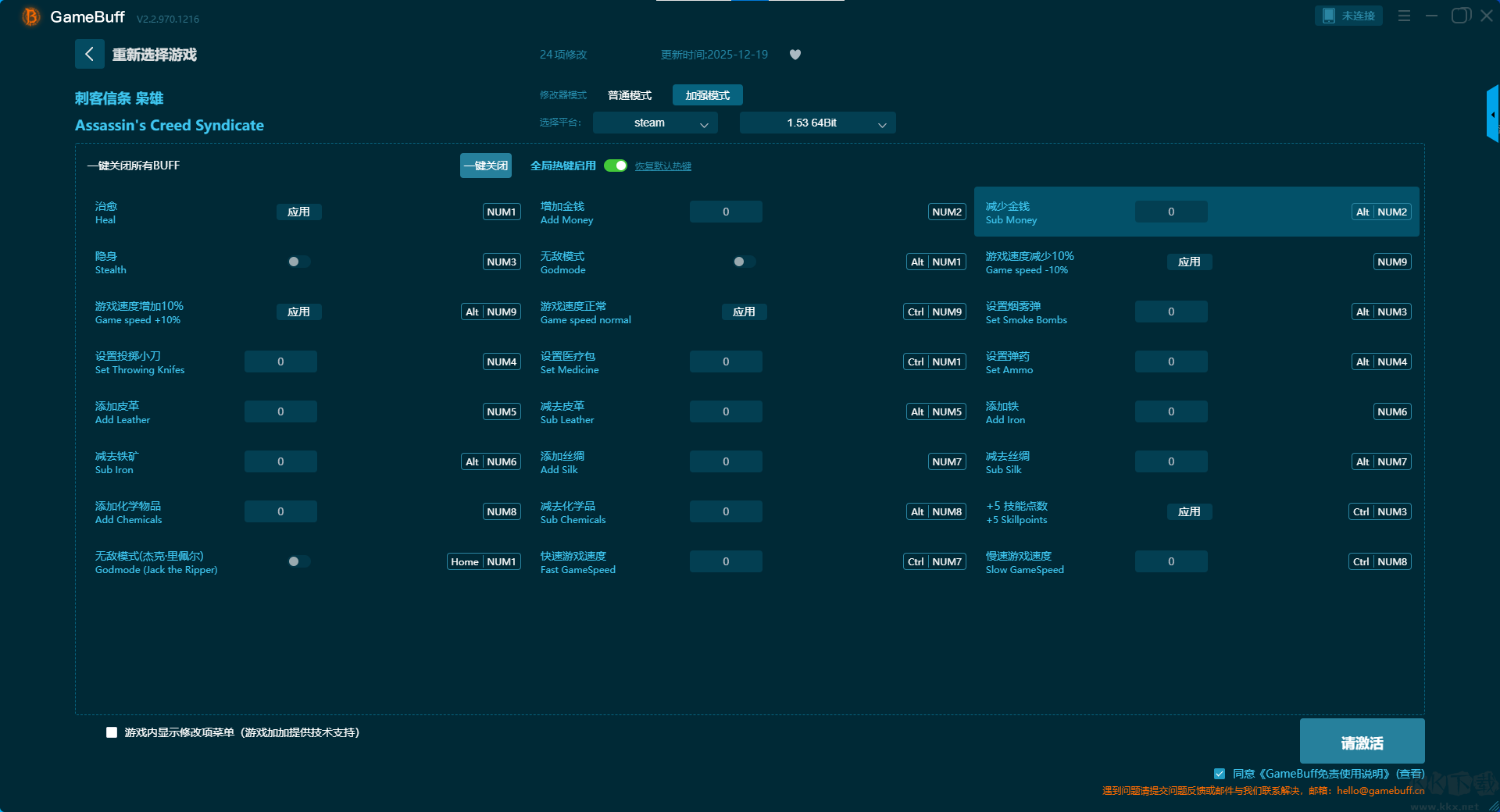 刺客信条枭雄二十四项修改器pc官网版加强模式修改功能介绍