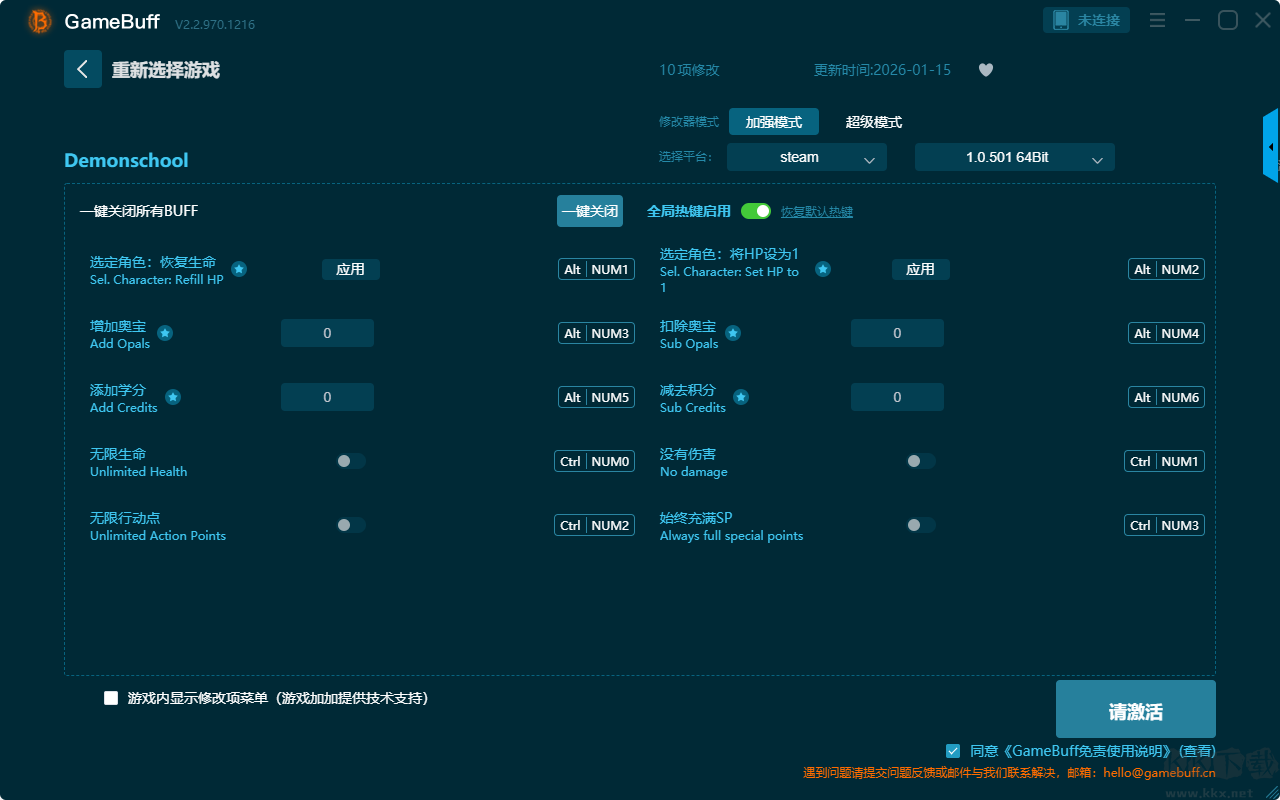恶魔学院十项修改器pc正版是一款专为安卓平台设计的游戏辅助软件,旨在为玩家提供便捷的游戏参数调整与操作优化功能。你可为游戏恶魔学院一键开启,增加奥宝、添加学分、无限生命、无限行动点、扣除奥宝、减去积分、没有伤害、始终充满 SP等超多项的修改功能。喜欢这款修改器的小伙伴快来KK下载站下载体验吧。