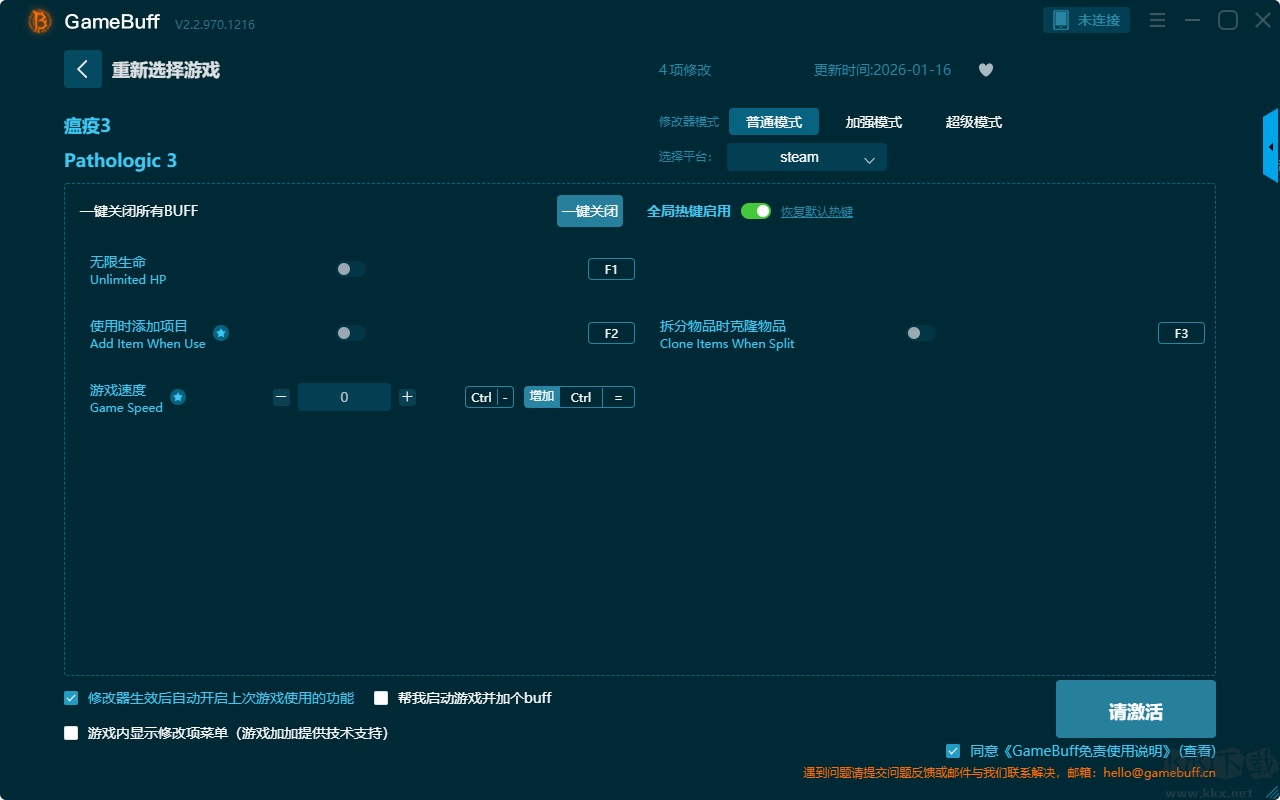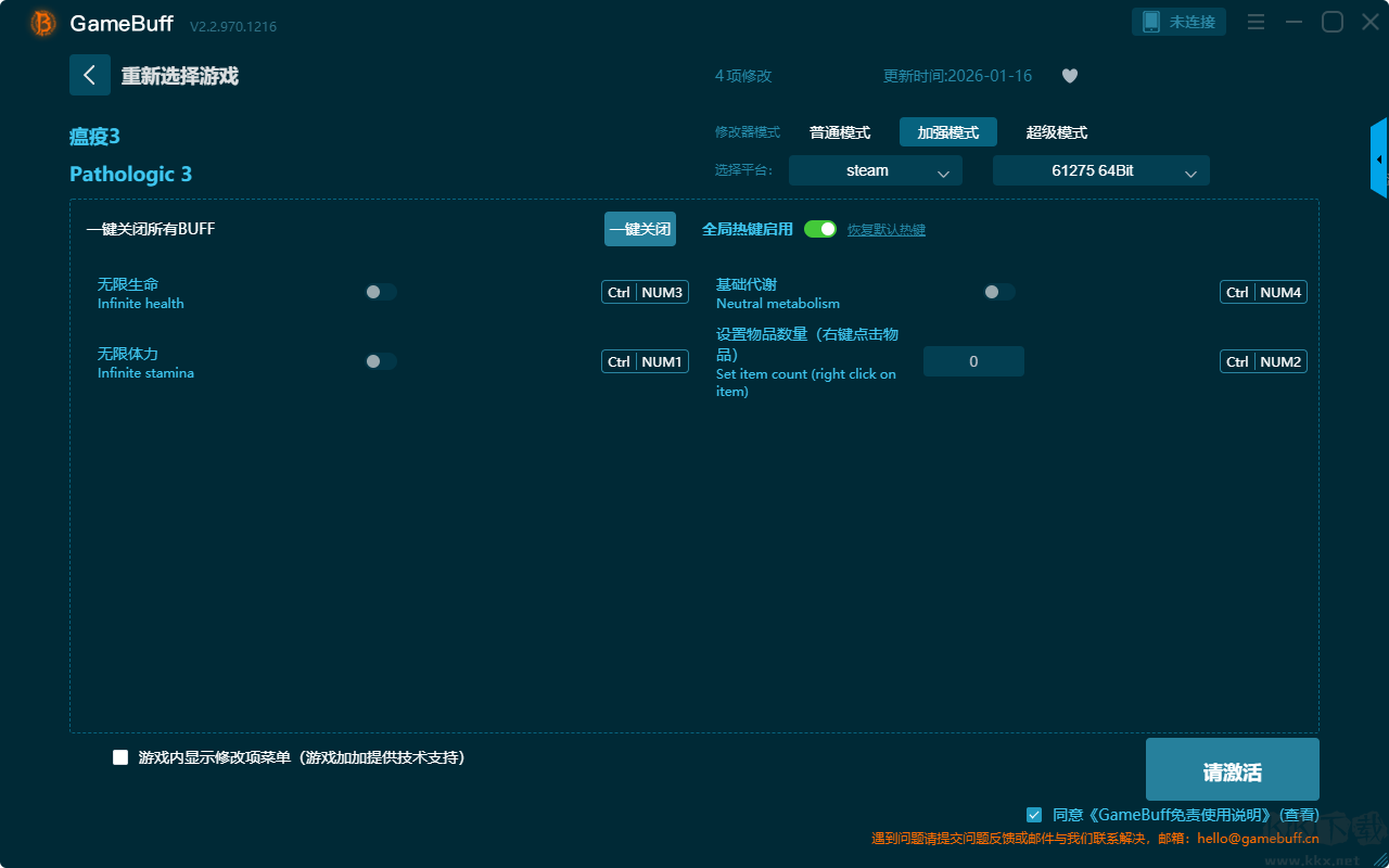 瘟疫3四项修改器pc最终版这是一款致力于打破游戏固有的难度壁垒与资源限制,让玩家能够根据自己的意愿重塑游戏体验。玩家可为游戏瘟疫3一键开启,无限生命、使用时添加项目、拆分物品时克隆物品、游戏速度、无限生命、无限体力、基础代谢、设置物品数量(右键点击物品)等超多修改功能。需要这款修改器的小伙伴就快来KK下载站下载体验吧。
