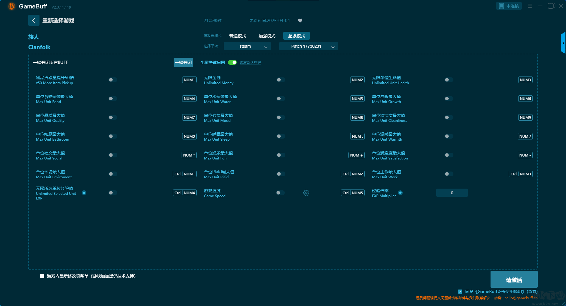 族人八项修改器pc最终版超级模式修改功能介绍