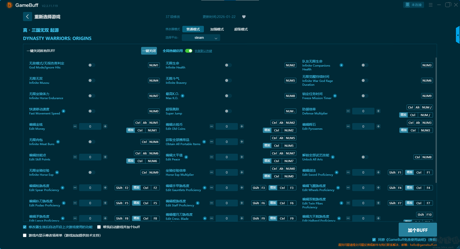 真三国无双起源三十七项修改器pc最终版普通模式修改功能介绍