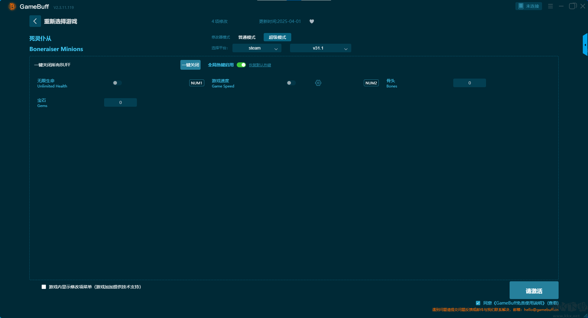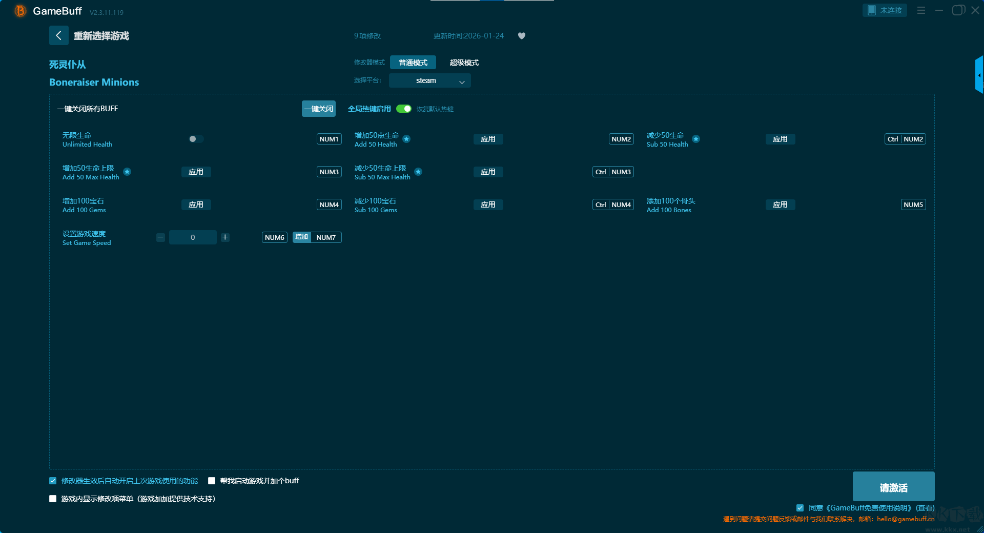 死灵仆从九项修改器pc单机版是一款专为PC单机游戏玩家打造的综合性辅助工具。它将市面上千款热门游戏的修改器功能整合于一个平台,旨在为玩家提供更便捷、更自由的游戏体验。可在游戏中一键开启,无限生命、增加 50 生命上限、增加 100 宝石、设置游戏速度、增加 50 点生命、减少 50 生命上限、减少 100 宝石等超多项强力功能。需要的小伙伴快来KK下载站下载吧。