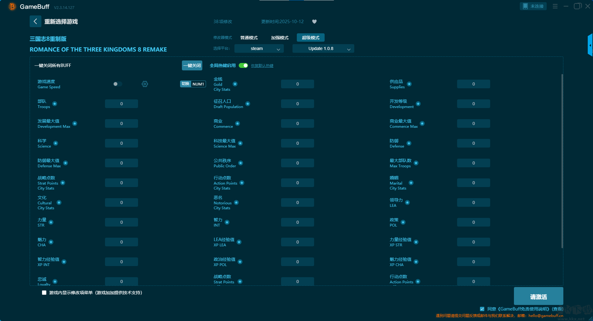 三国志8重制版六十四项修改器pc最终版超级模式修改功能介绍