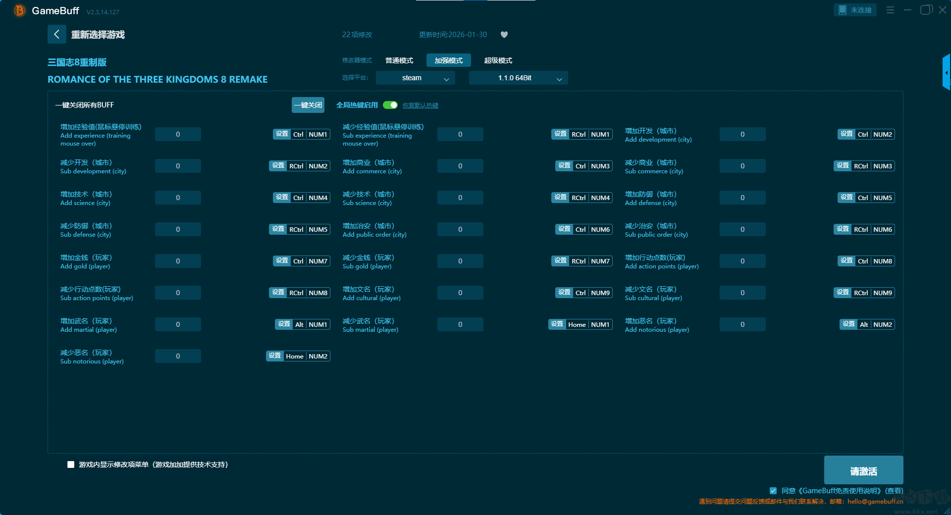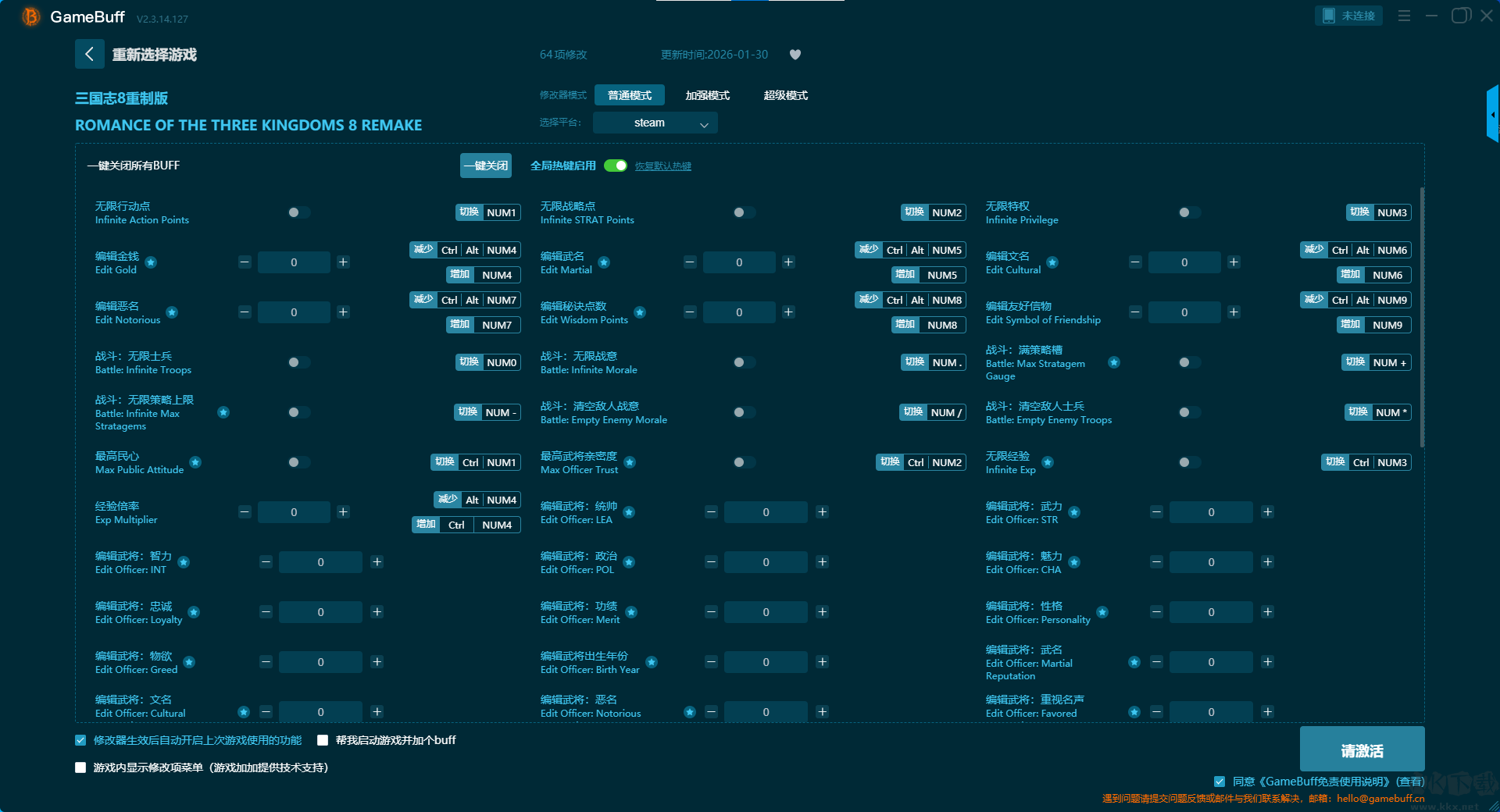 三国志8重制版六十四项修改器pc最终版加强模式修改功能介绍